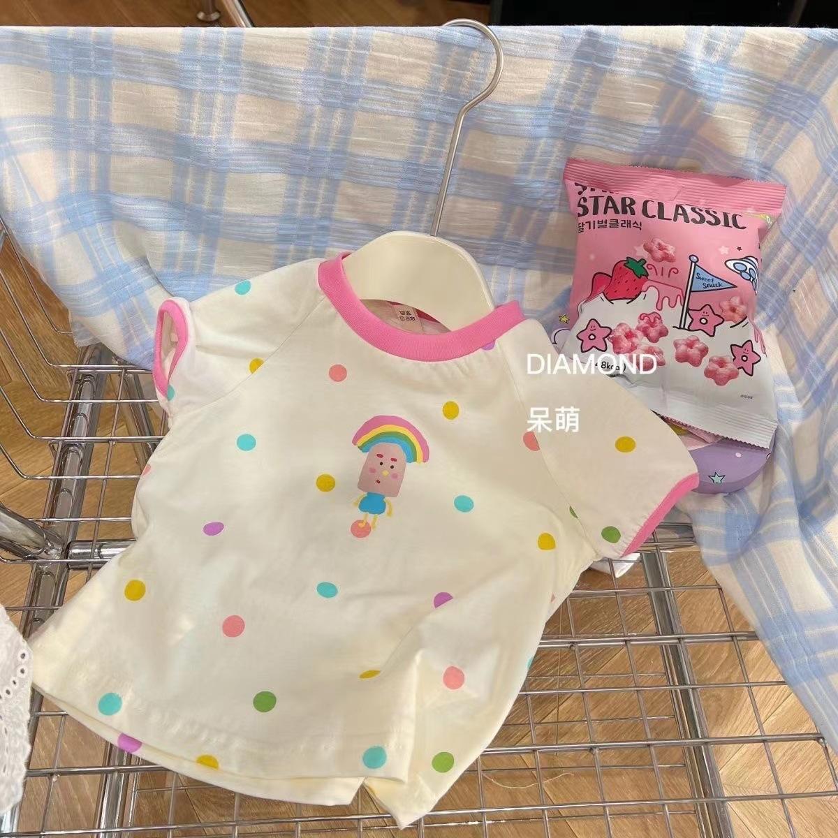 Traje de Verano para Niñas 2025 Nuevo Moda para Bebé Niña Lunares Manga Corta Estilo Infantil Estilo Coreano Conjunto Corto de Dos Piezas
