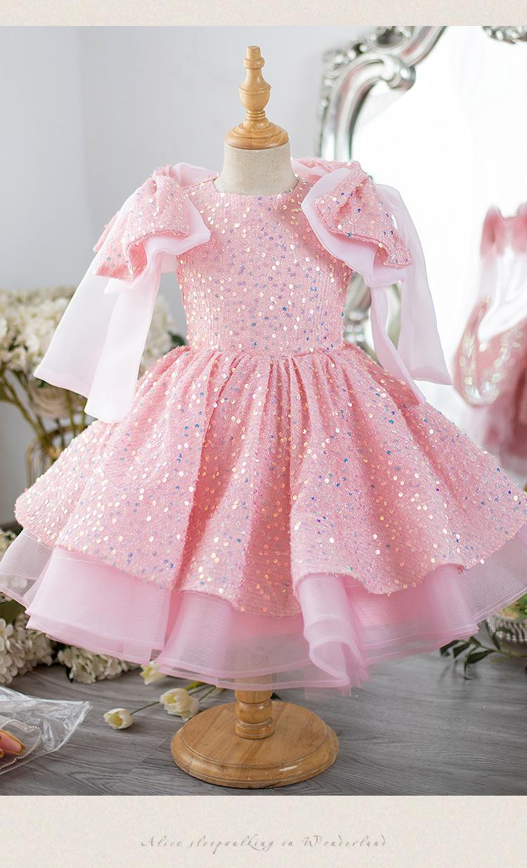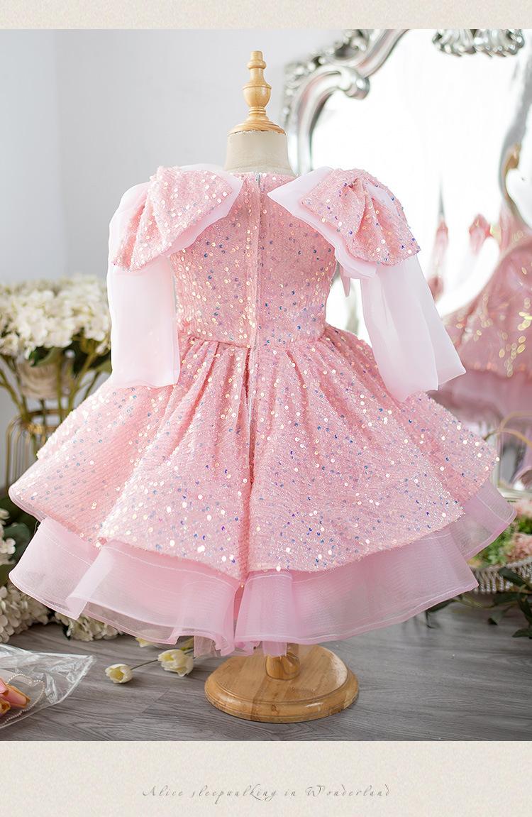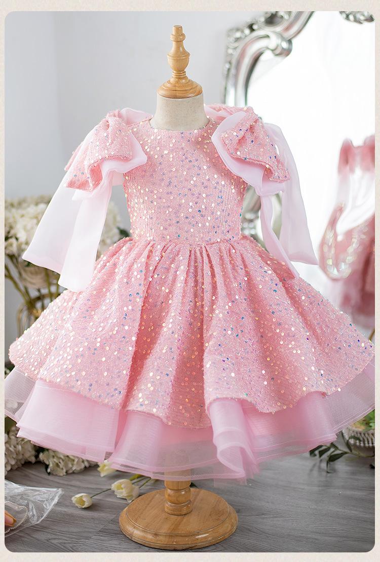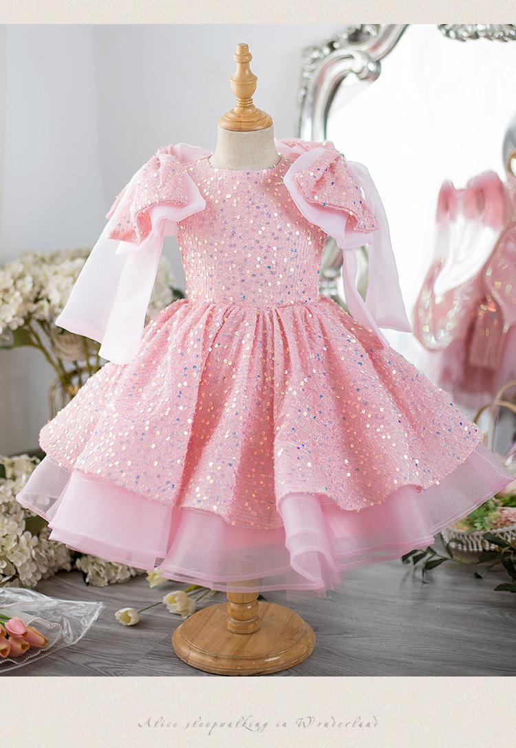 Vestido de niña Vestido de princesa con lentejuelas para boda de niña de las flores Vestido de niña con velo abullonado Vestido de presentación de piano para niños Verano
