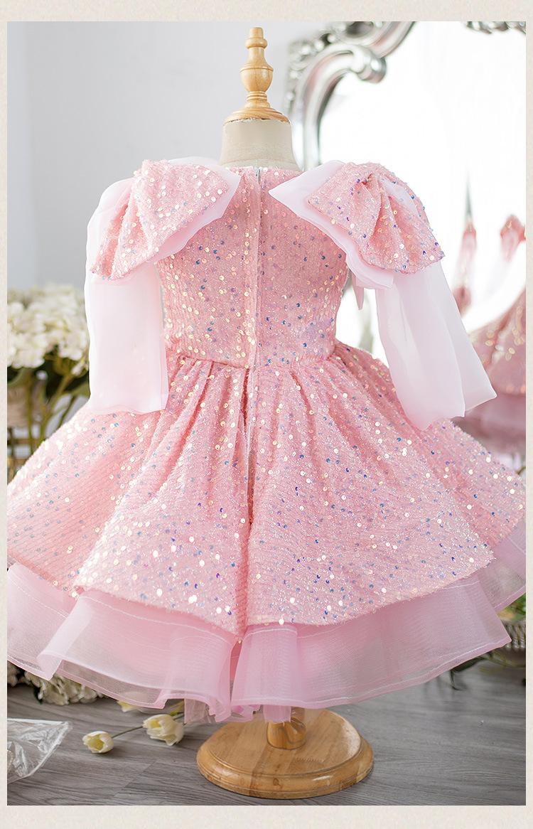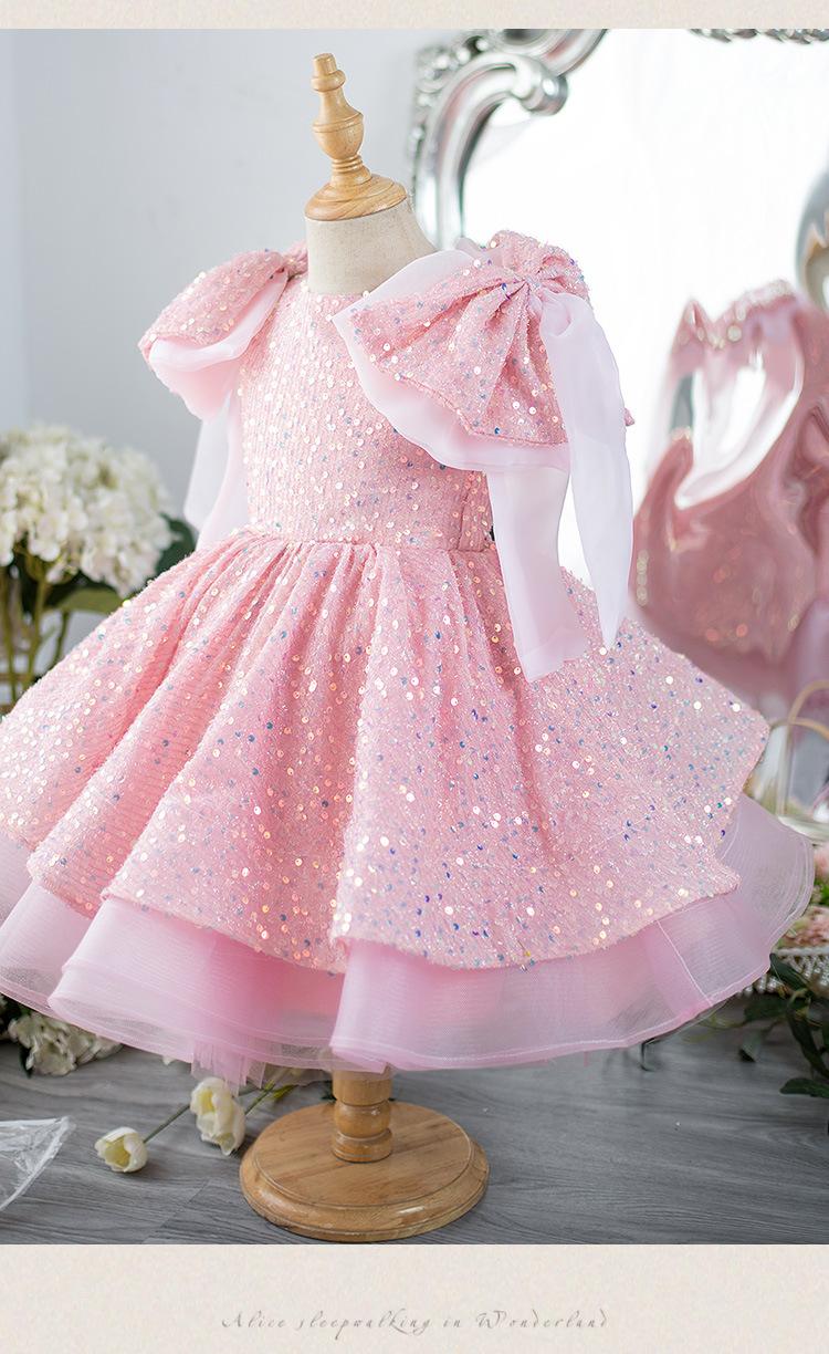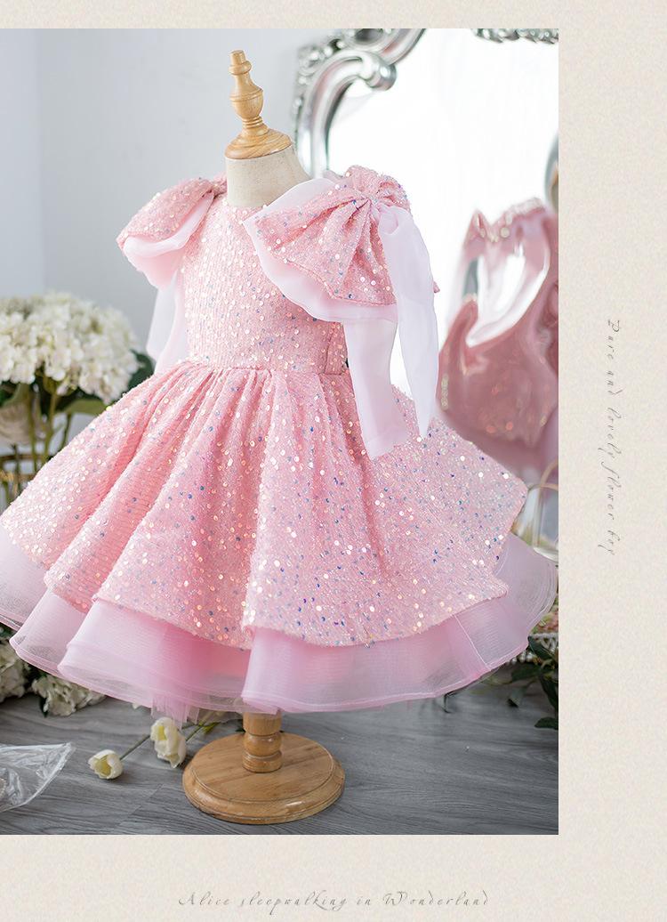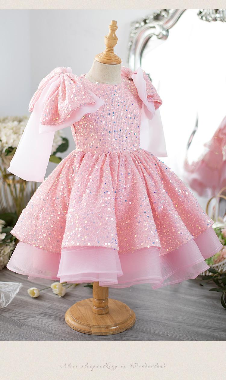 Vestido de niña Vestido de princesa con lentejuelas para boda de niña de las flores Vestido de niña con velo abullonado Vestido de presentación de piano para niños Verano
