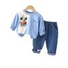 Long-sleeved cartoon patchwork sweater two-piece blue