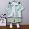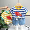 Traje de verano para niños 2024, nuevo traje de dos piezas de dibujos animados de manga corta con rayas coreanas de estilo occidental para niños