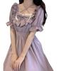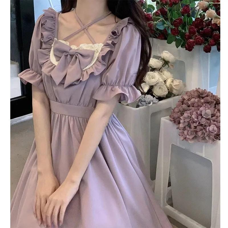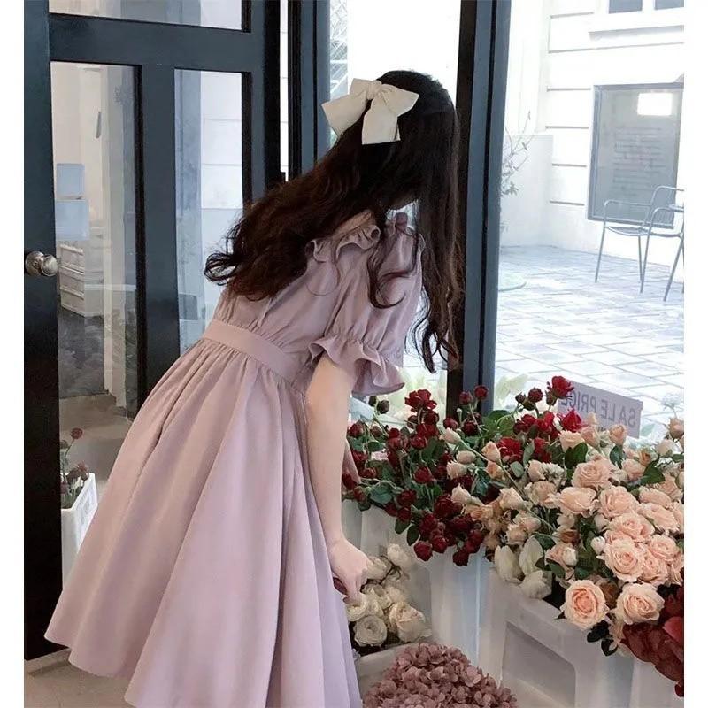 Vestido de Color Puro para Niñas Vestido de Verano Jersey para Bebé Niña Moderno Mediano y Grande Ropa para Niños Popular Nuevo Falda Morada