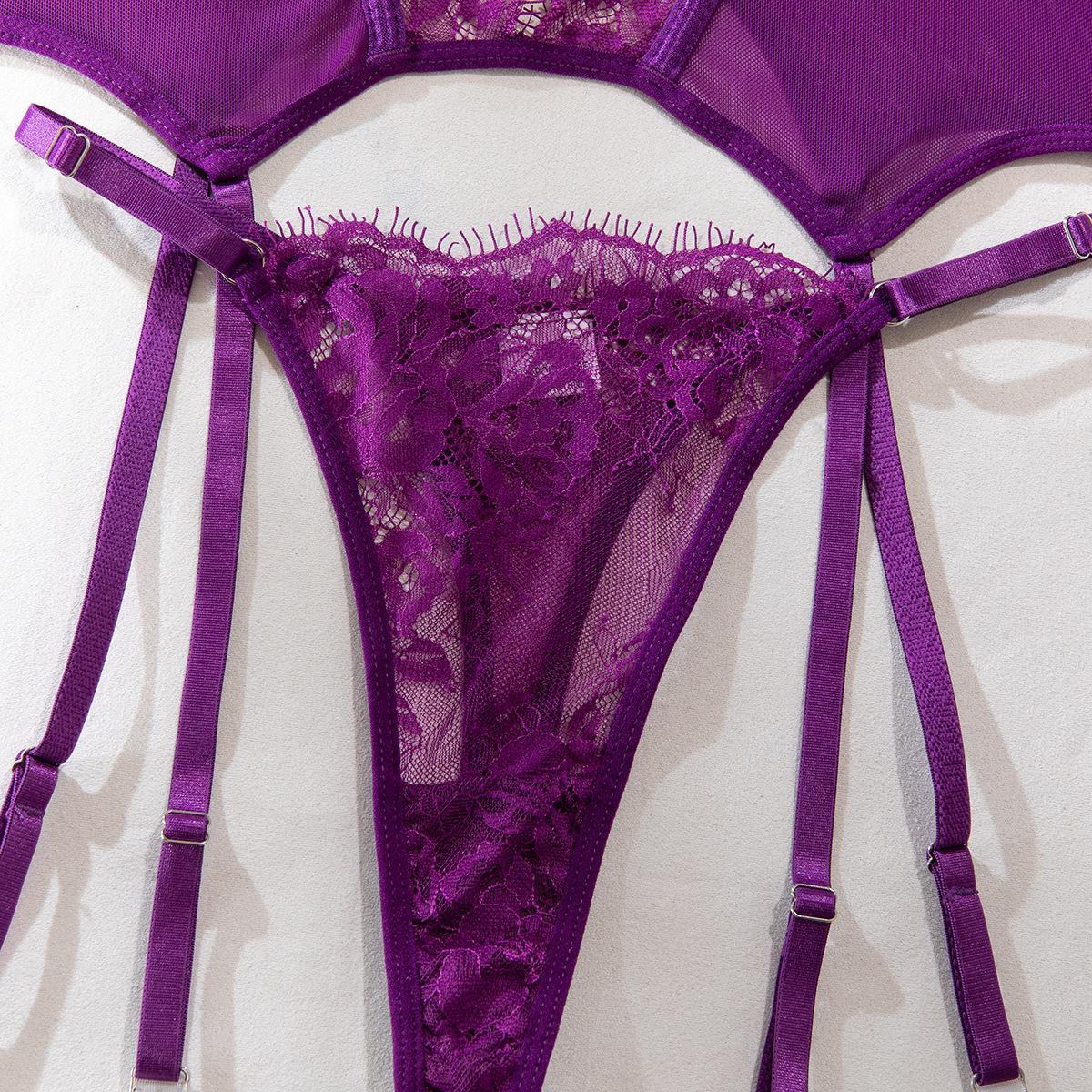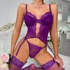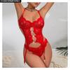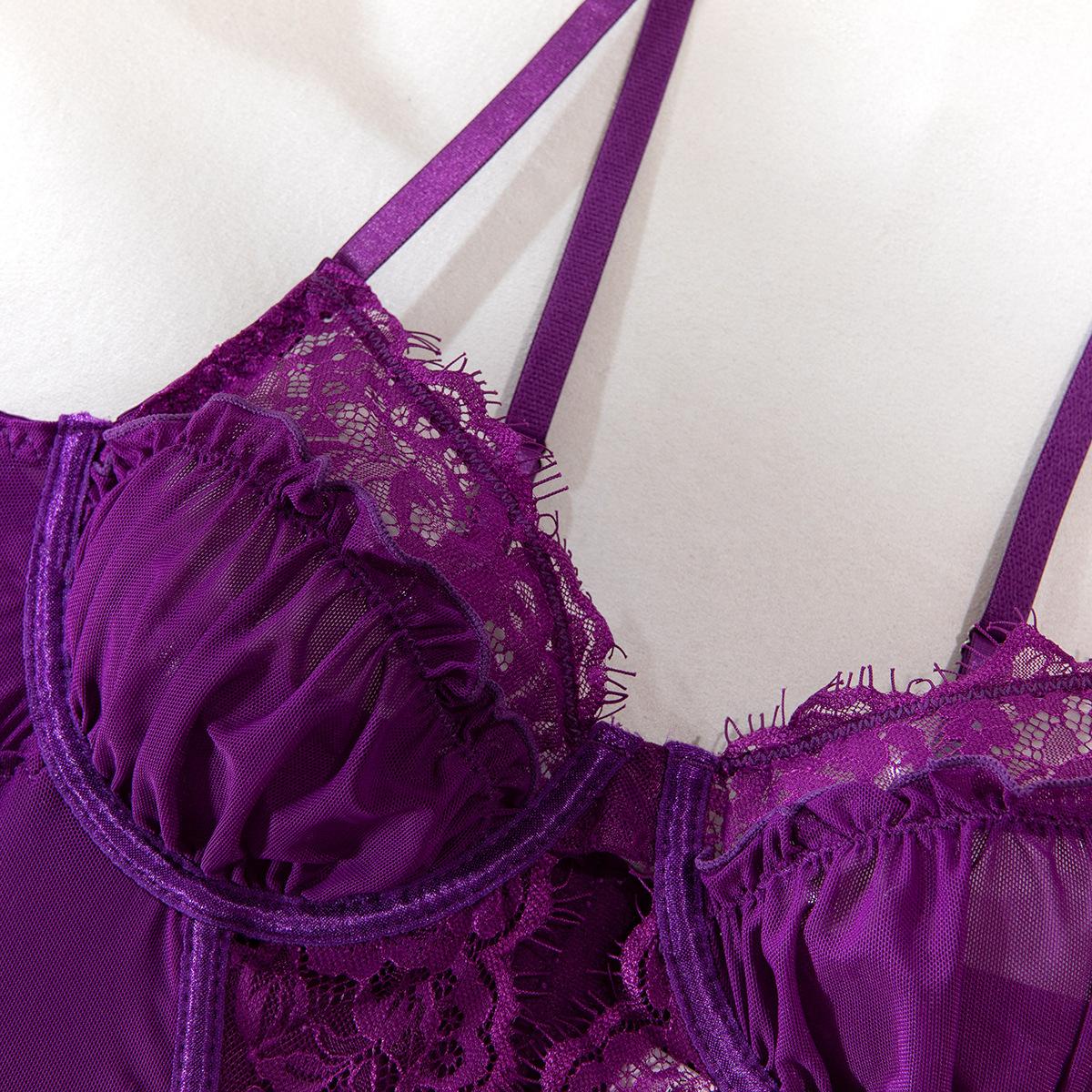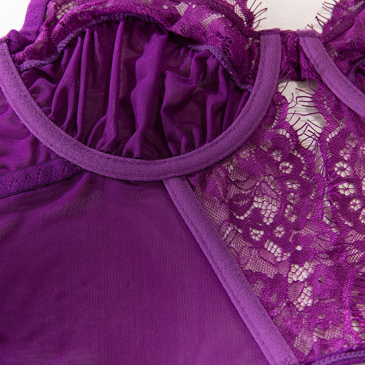 Nuevo top camisola con varillas de espina de pescado, encaje de malla fina, costuras, pecho abierto, ropa interior sexy para mujer con medias