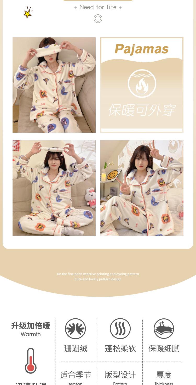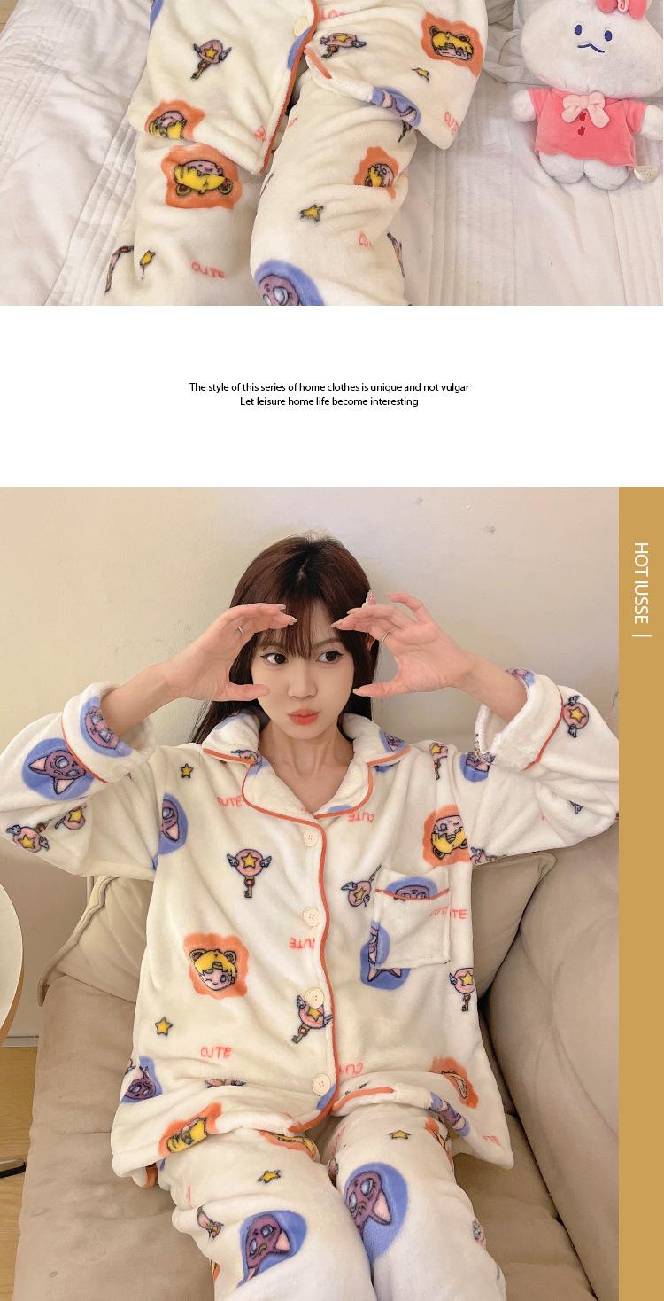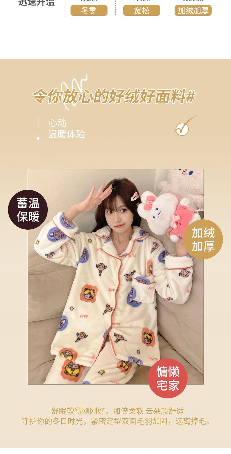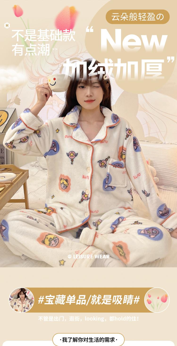 Pijamas de franela para el hogar con dibujos animados de una hermosa niña guerrera, forrados con vellón de coral grueso para otoño e invierno, venta al por mayor