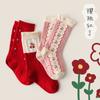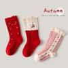 Calcetines de otoño e invierno para niños, venta al por mayor, calcetines de encaje rojo Mori para niñas, calcetines coreanos de tubo medio, calcetines de algodón para niños de tamaño mediano