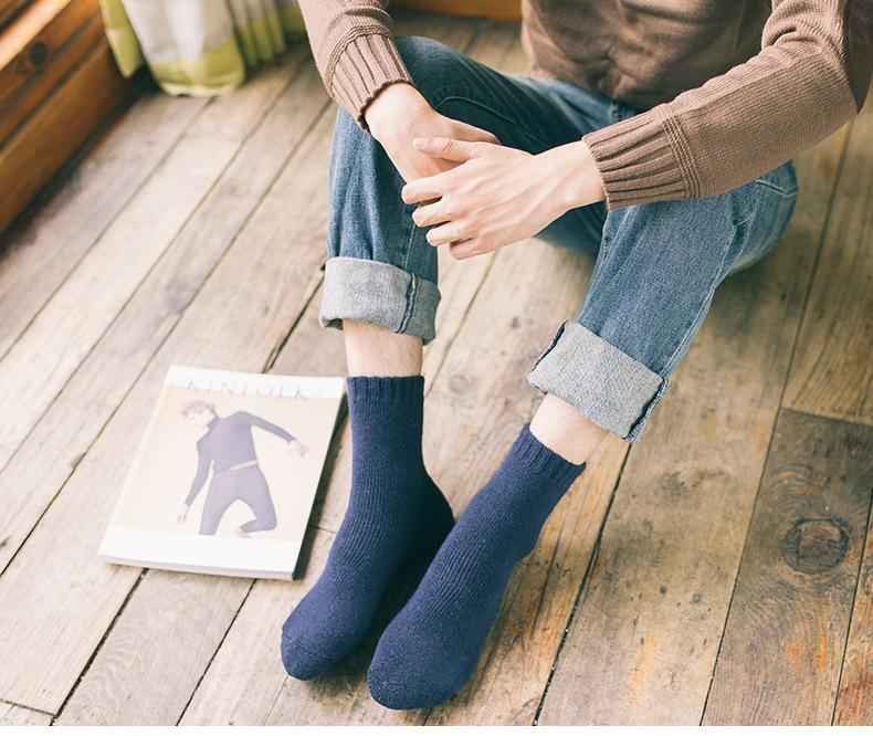 Calcetines gruesos de lana de otoño e invierno para hombres y mujeres, calcetines hasta media pantorrilla, calcetines de felpa gruesos y cálidos, calcetines casuales de toalla de color sólido