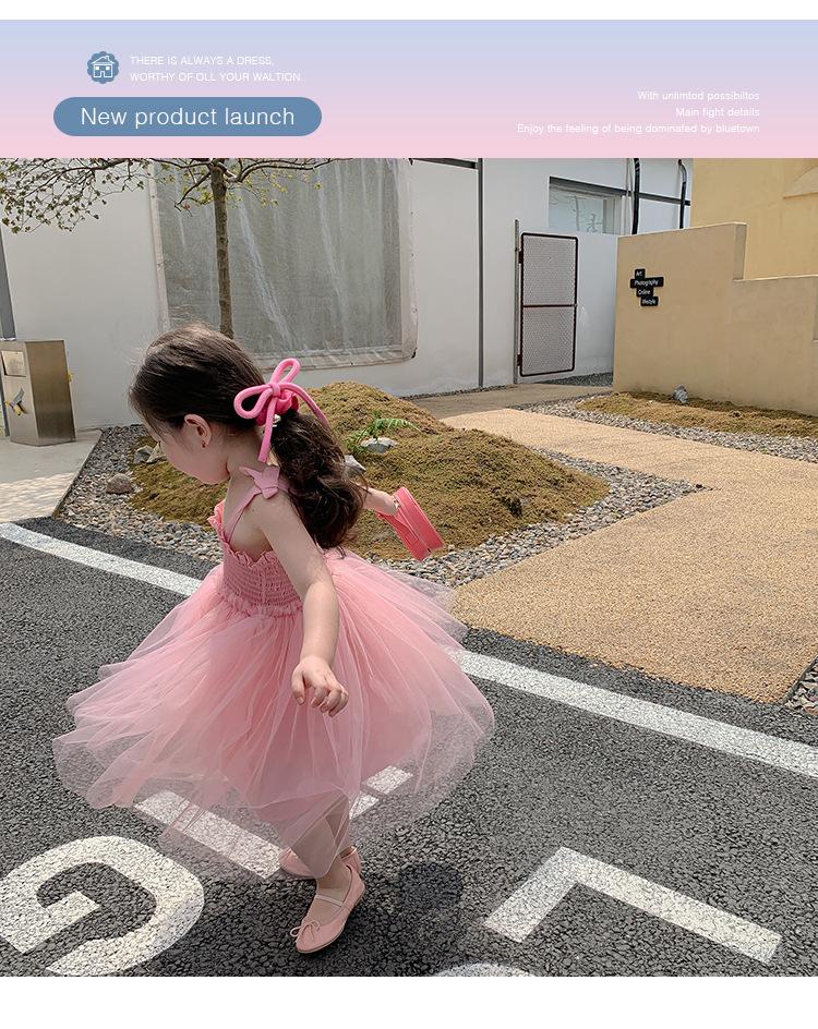 Vestido de princesa para niña, novedad de verano 2024, vestido de malla para niña, vestido de pastel para bebé, vestido lencero con lazo