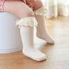 Calcetines para niña calcetines hasta la pantorrilla con borde de encaje de lazo colorido calcetines ligeros transpirables suaves de algodón para bebé calcetines para bebé niño