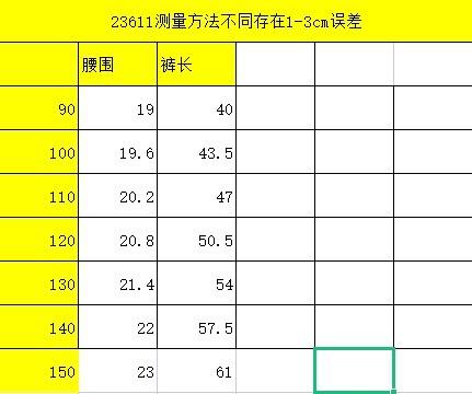 90cm, 100cm, 110cm, 120cm, 130cm, 140cm, 150cm