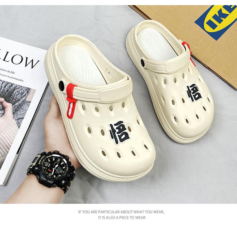 Zapatos de Agujeros de Verano 2024 Talla Grande para Hombre Huecos Transpirables Sandalias Baotou para Hombre Ligeras de Dos Usos Sandalias de Playa