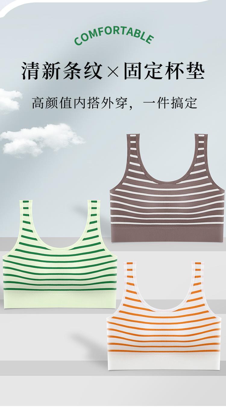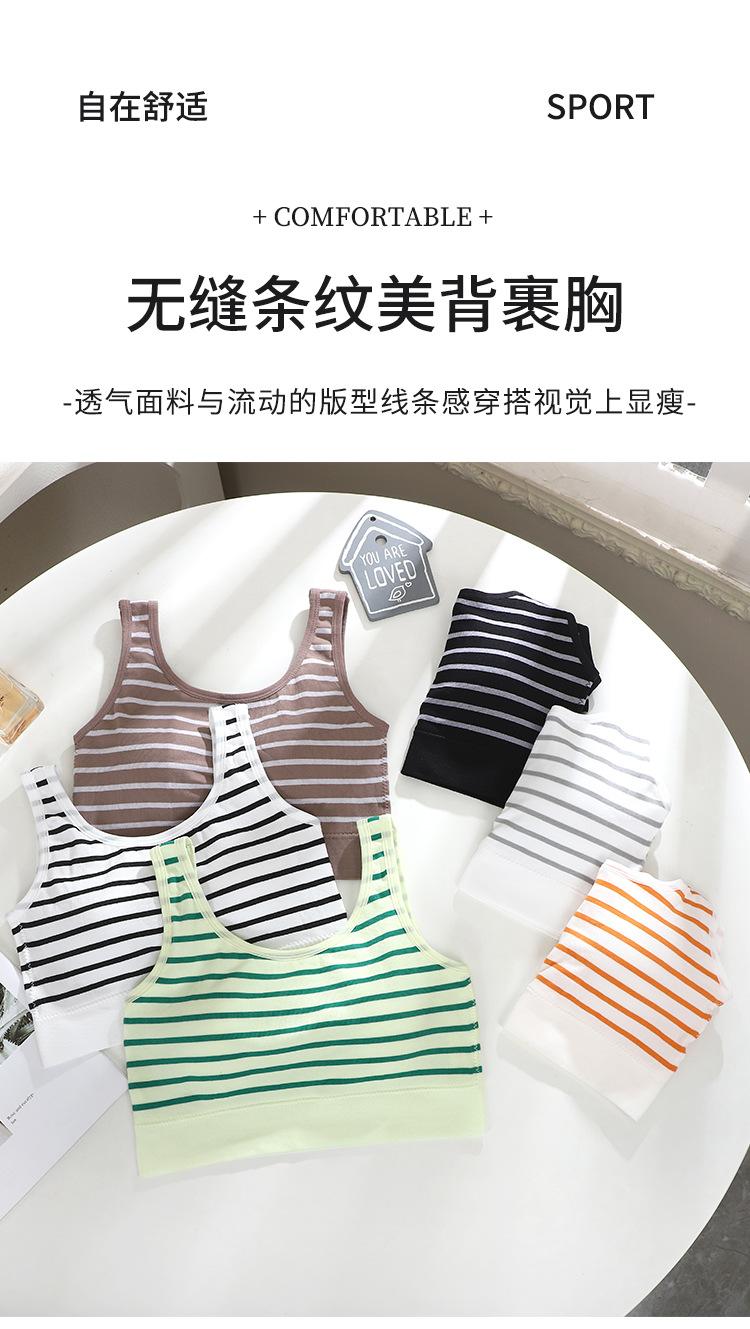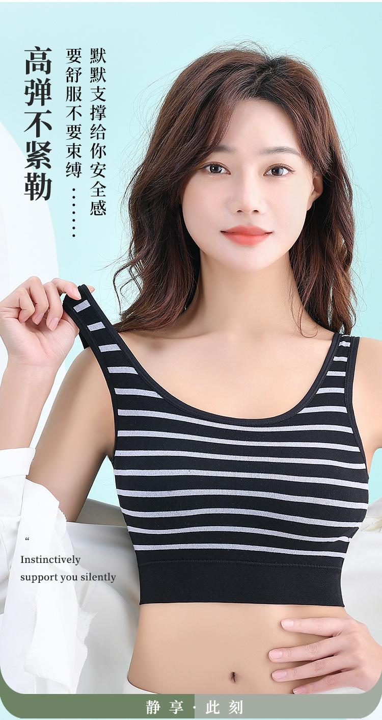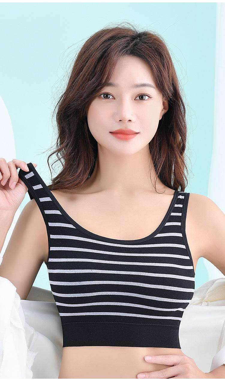 Compra Nuevo Hilo Transfronterizo Espalda Hermosa Chaleco Pequeño Sensación Látex Copa Fija Transpirable Rayado Envoltura de Pecho Ropa Interior Sujetador para Mujer sin Aros al por mayor en Joom.pro