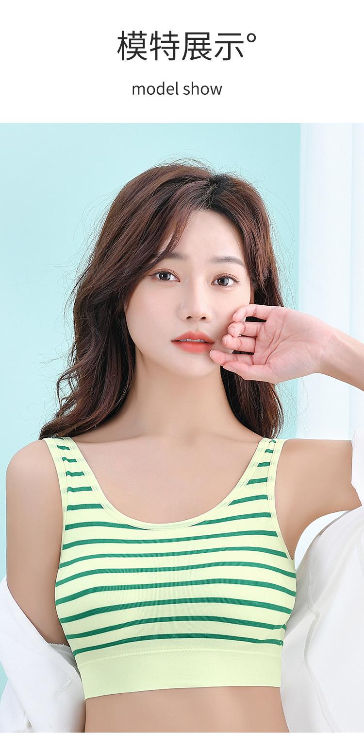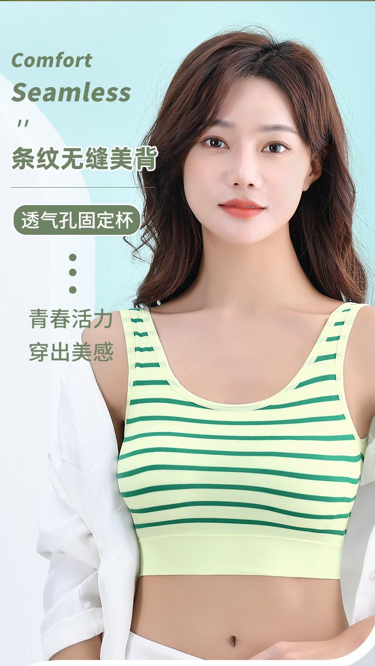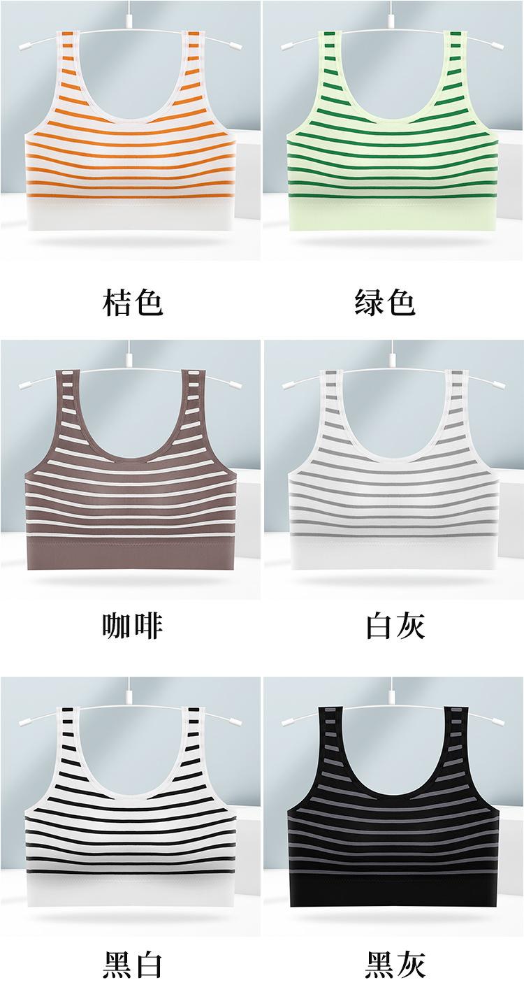 Compra Nuevo Hilo Transfronterizo Espalda Hermosa Chaleco Pequeño Sensación Látex Copa Fija Transpirable Rayado Envoltura de Pecho Ropa Interior Sujetador para Mujer sin Aros al por mayor en Joom.pro