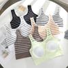 Nuevo Hilo Transfronterizo Espalda Hermosa Chaleco Pequeño Sensación Látex Copa Fija Transpirable Rayado Envoltura de Pecho Ropa Interior Sujetador para Mujer sin Aros