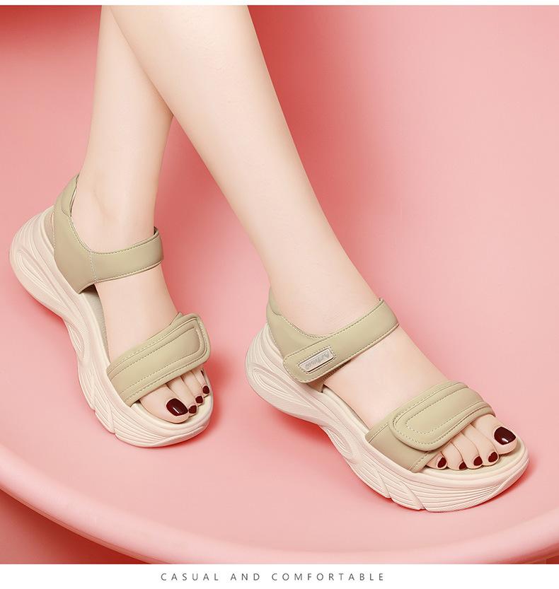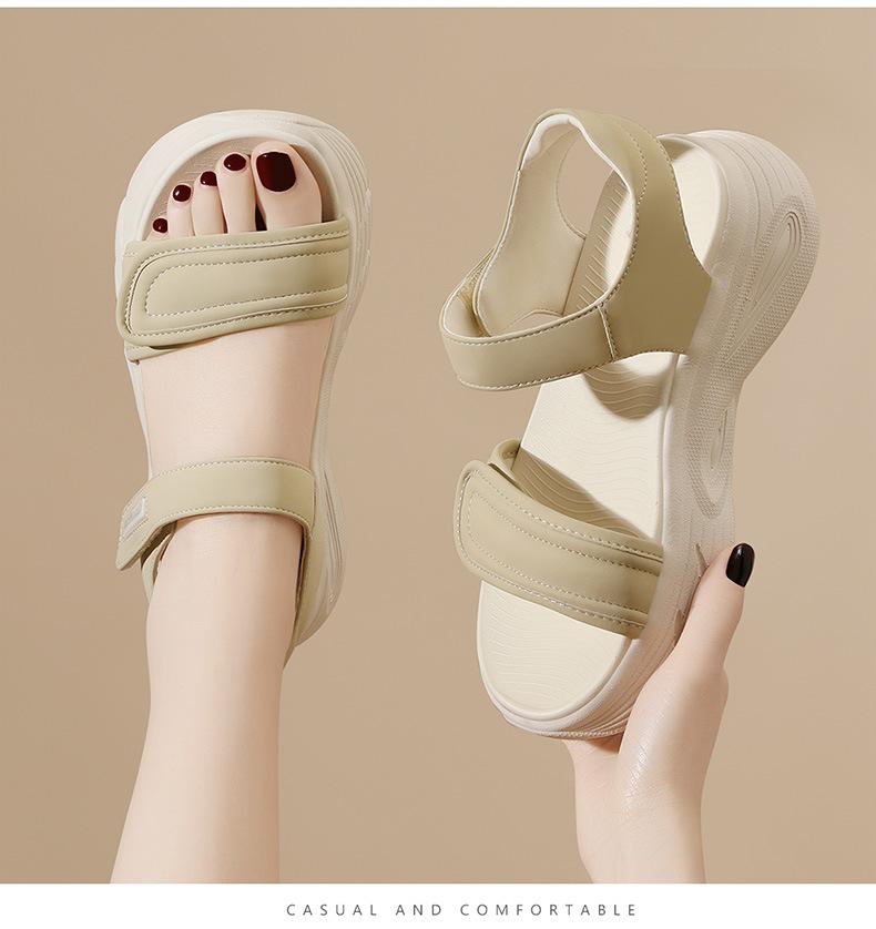 Sandalias de suela gruesa para mujer, novedad de verano 2024, moda deportiva informal, zapatos de playa romanos de suela blanda para mujer