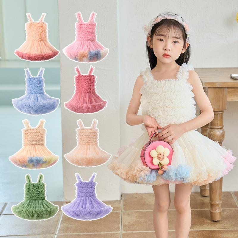 [Prenda azul] Vestido de princesa con tutú para niñas de Europa y América, vestido de niña de un año, falda de pastel