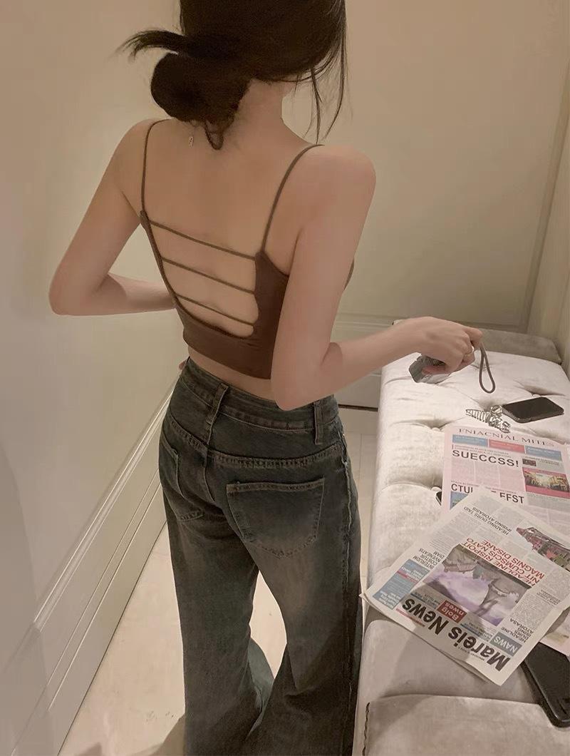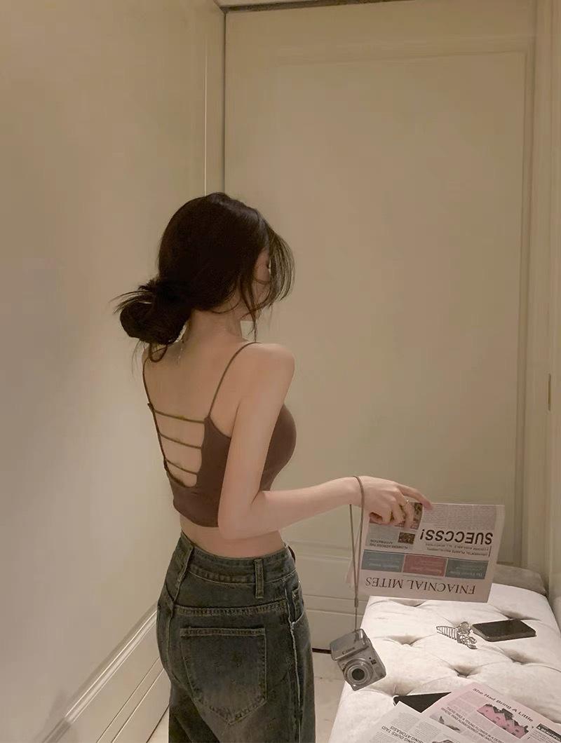 Camisola de verano de algodón con espalda hueca, absorbente del sudor, antiexposición, sexy, con pecho envuelto, ropa interior exterior con pecho envuelto interior
