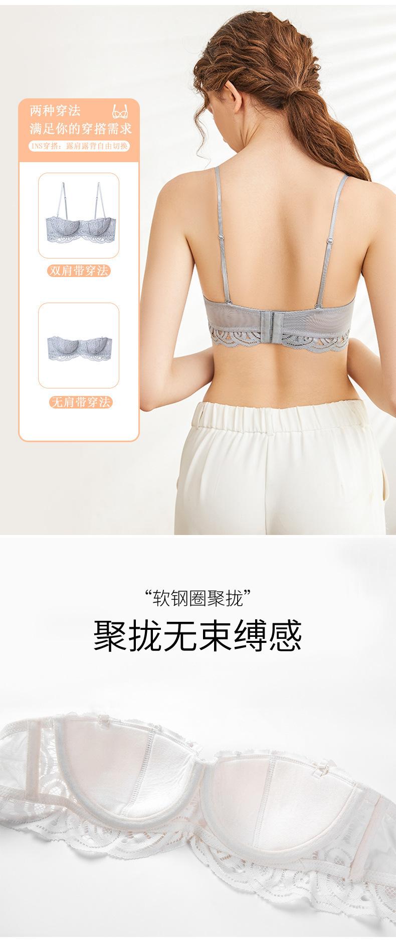 Sujetador Francés de Alta Calidad para Mujer con Soporte de Aro de Acero Suave para Mostrar los Senos, Sujetador Push-Up Pequeño, Sujetador Sexy de Encaje Fino