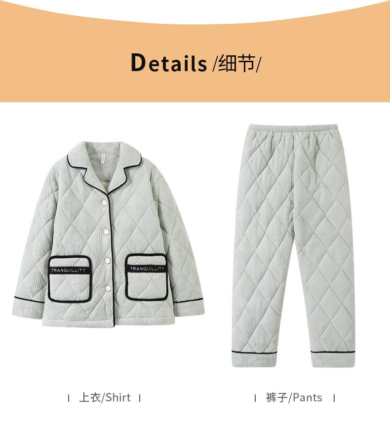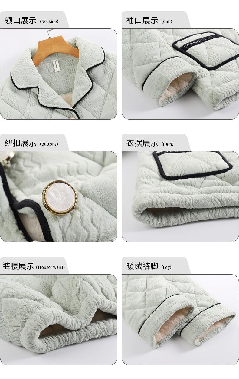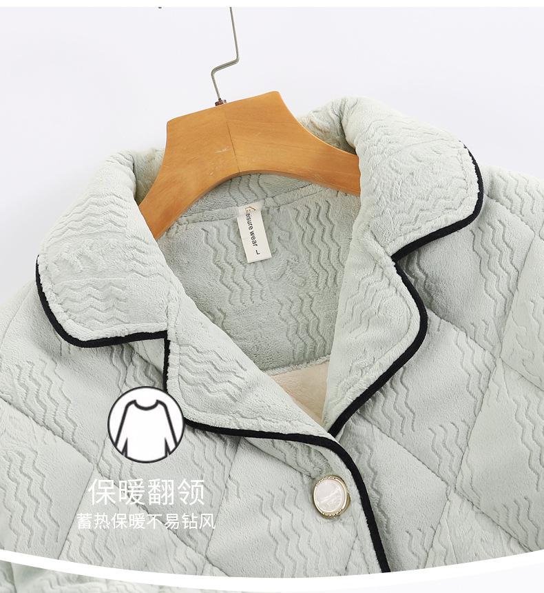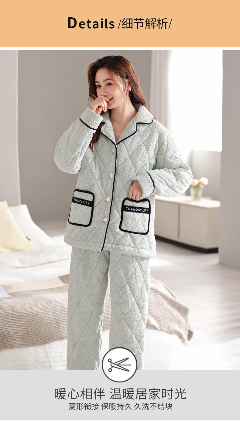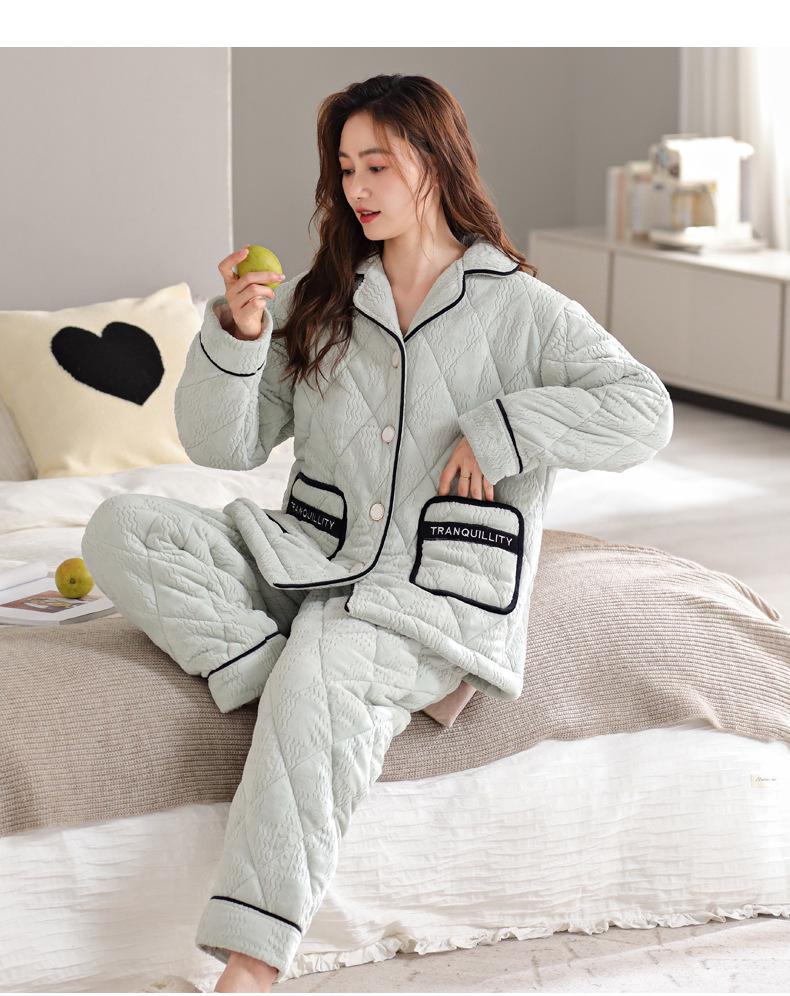 Pijama cálido de franela de invierno para mujer, de tres capas, acolchado, de color sólido, con solapa, estilo dulce y lindo, para el hogar