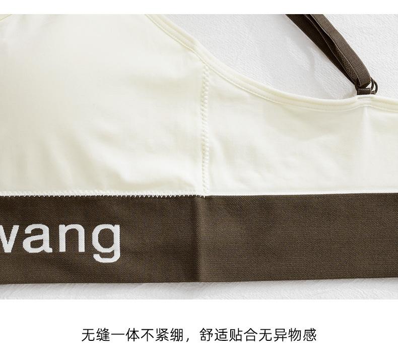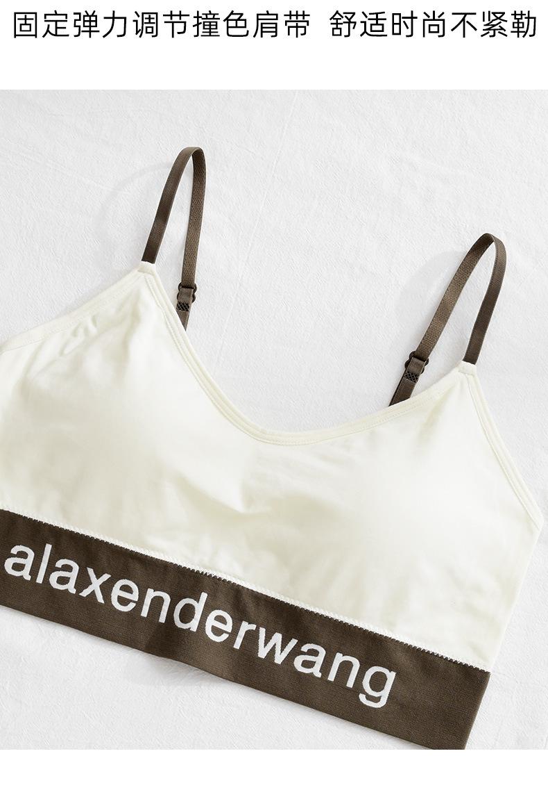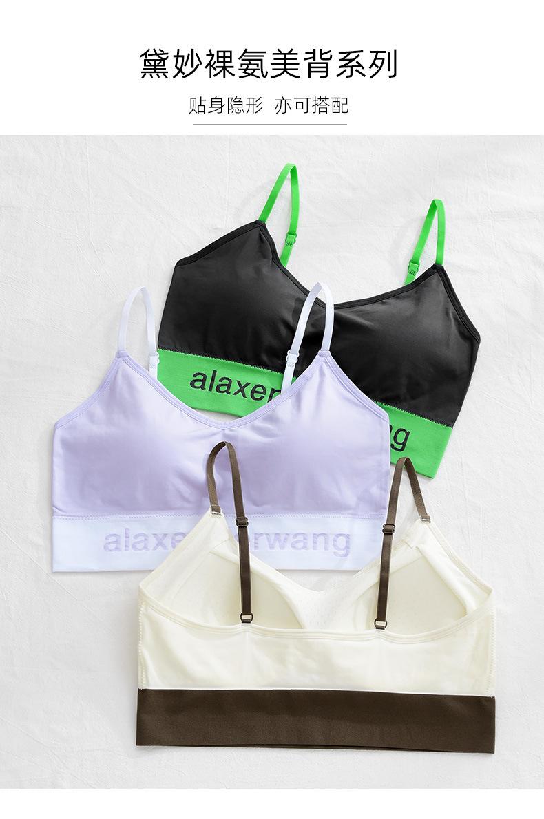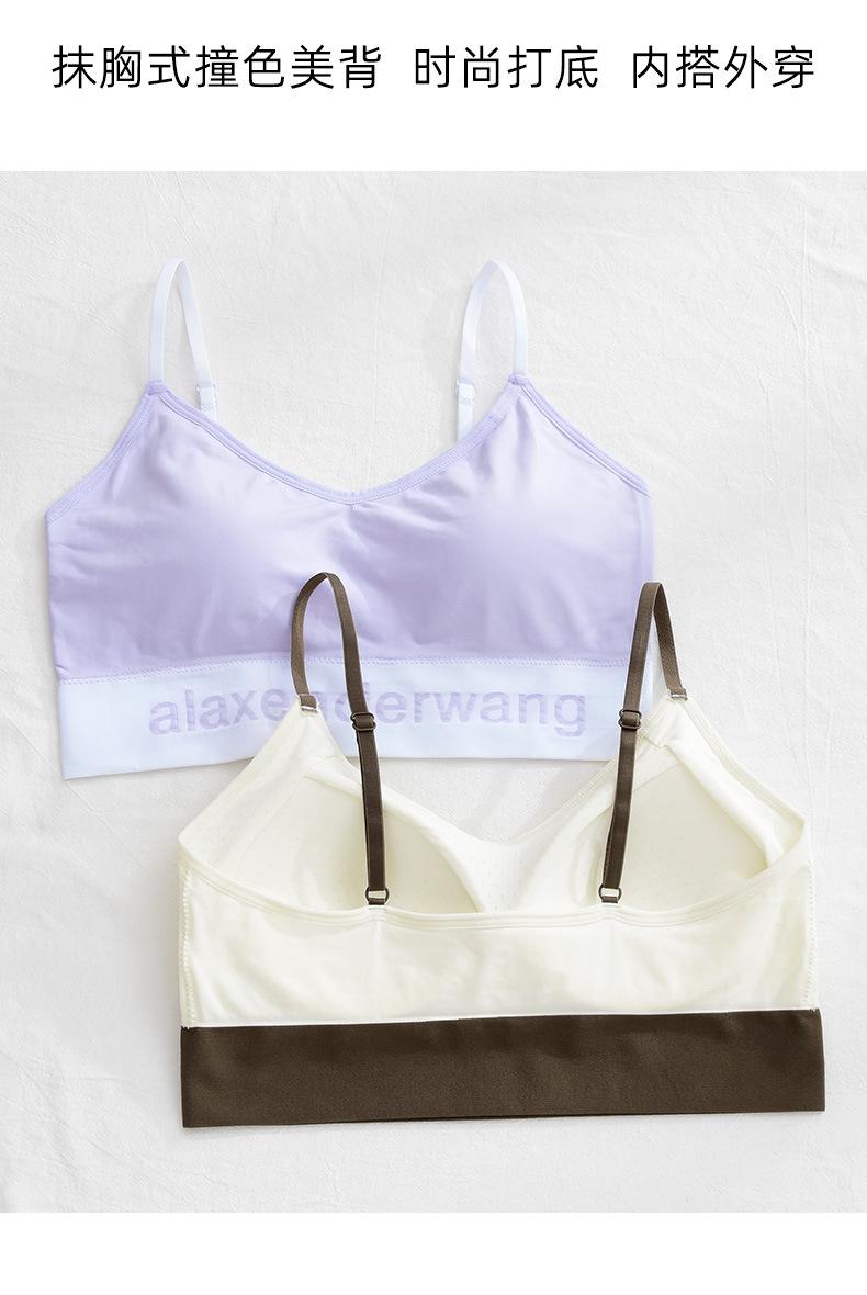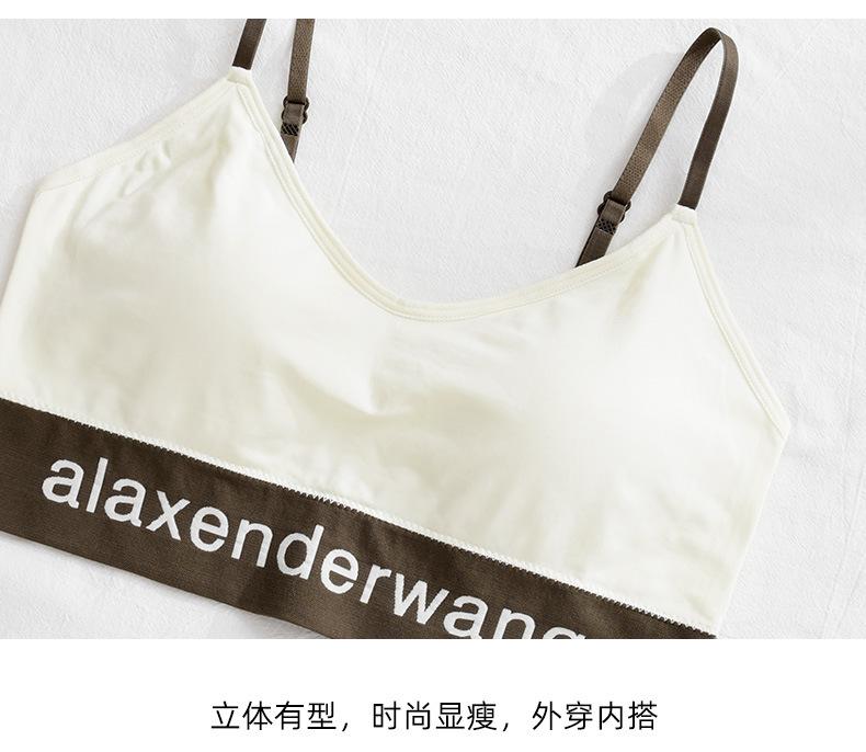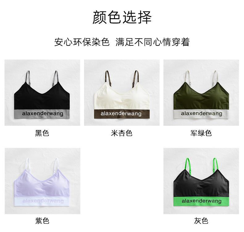 Ropa interior de seda de hielo de color contrastante con espalda bonita, sujetador para mujer, inalámbrico, con tirantes, almohadilla para el pecho, chaleco para usar debajo con letras, pecho envuelto, verano