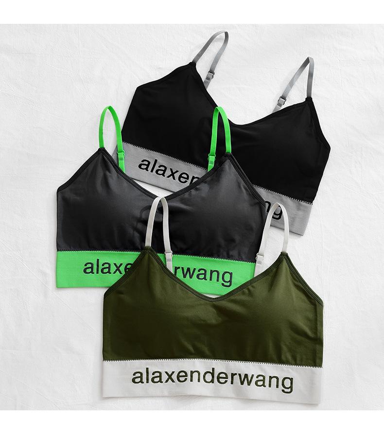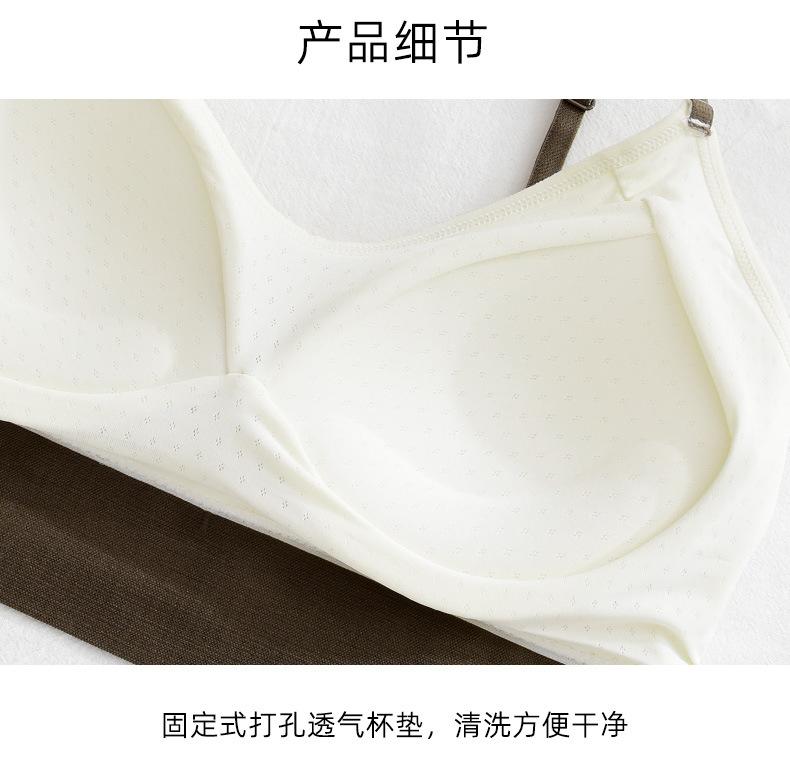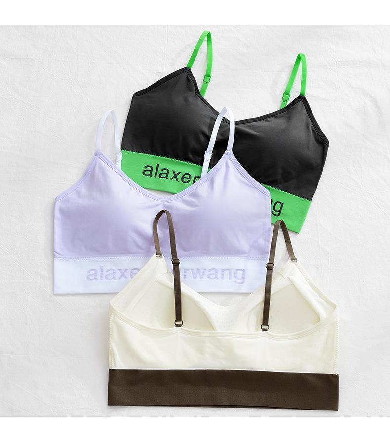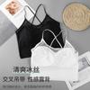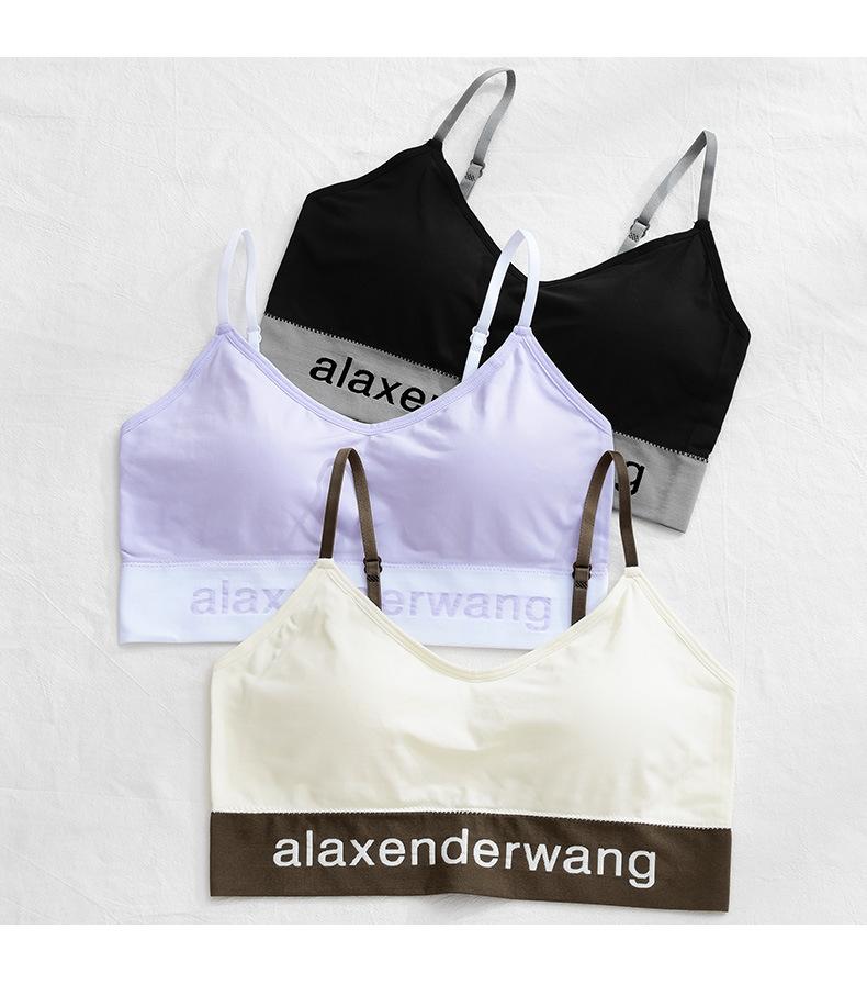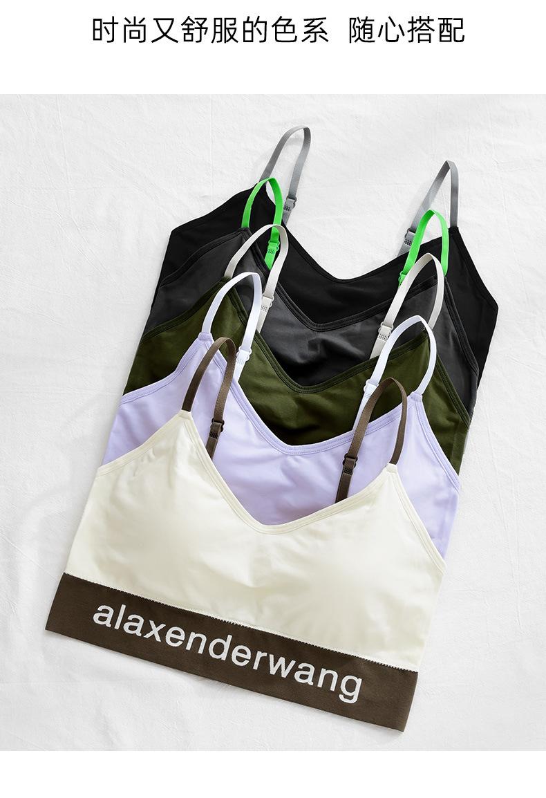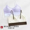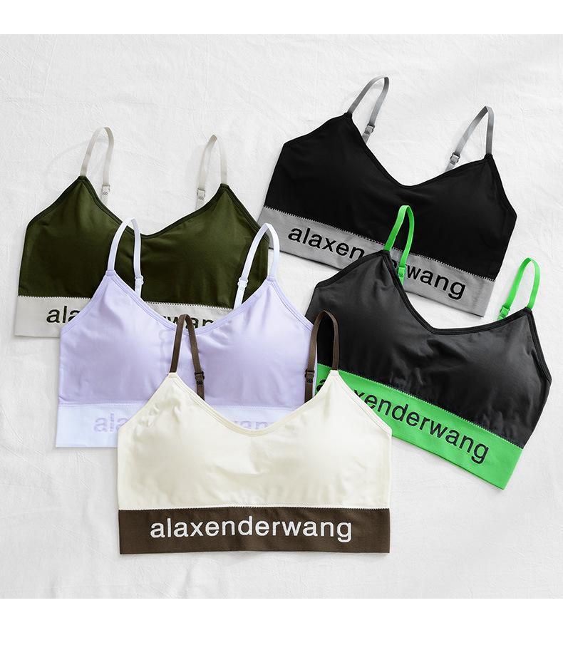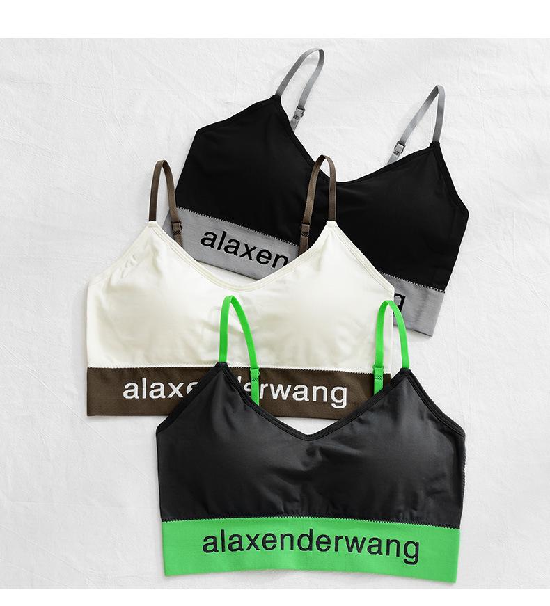 Ropa interior de seda de hielo de color contrastante con espalda bonita, sujetador para mujer, inalámbrico, con tirantes, almohadilla para el pecho, chaleco para usar debajo con letras, pecho envuelto, verano