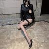 Calcetines rojos sexys por encima de la rodilla para mujer, con borde rojo, de seda negra, largos hasta el muslo, pantimedias ultrafinas de rosca Spice Girls HB01