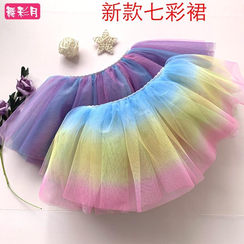 Falda tutú colorida para niñas, de malla de hilo de cuatro capas, para práctica de ballet, de media longitud, de princesa, para actuaciones, nuevo estilo