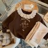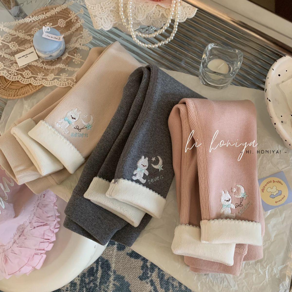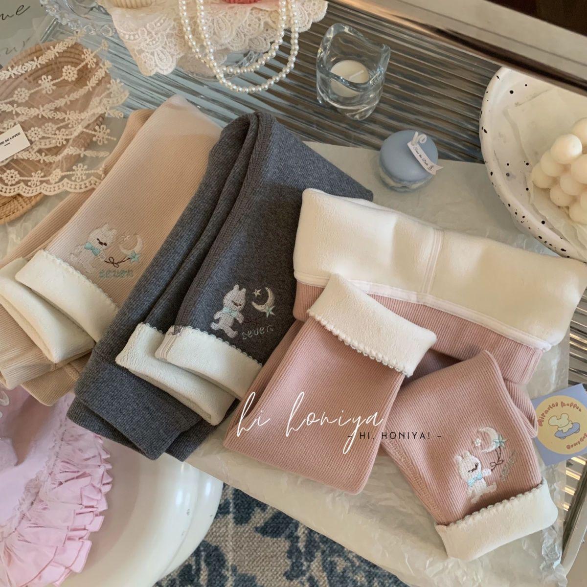 Leggings de otoño e invierno 2023 con forro polar bordado con dibujos animados para niñas, pantalones coreanos ajustados a juego para niños