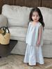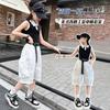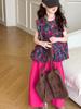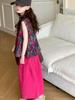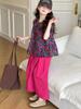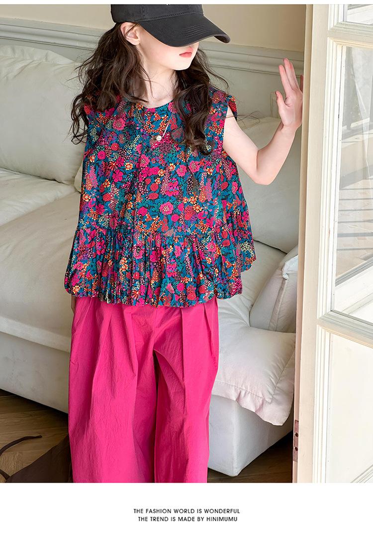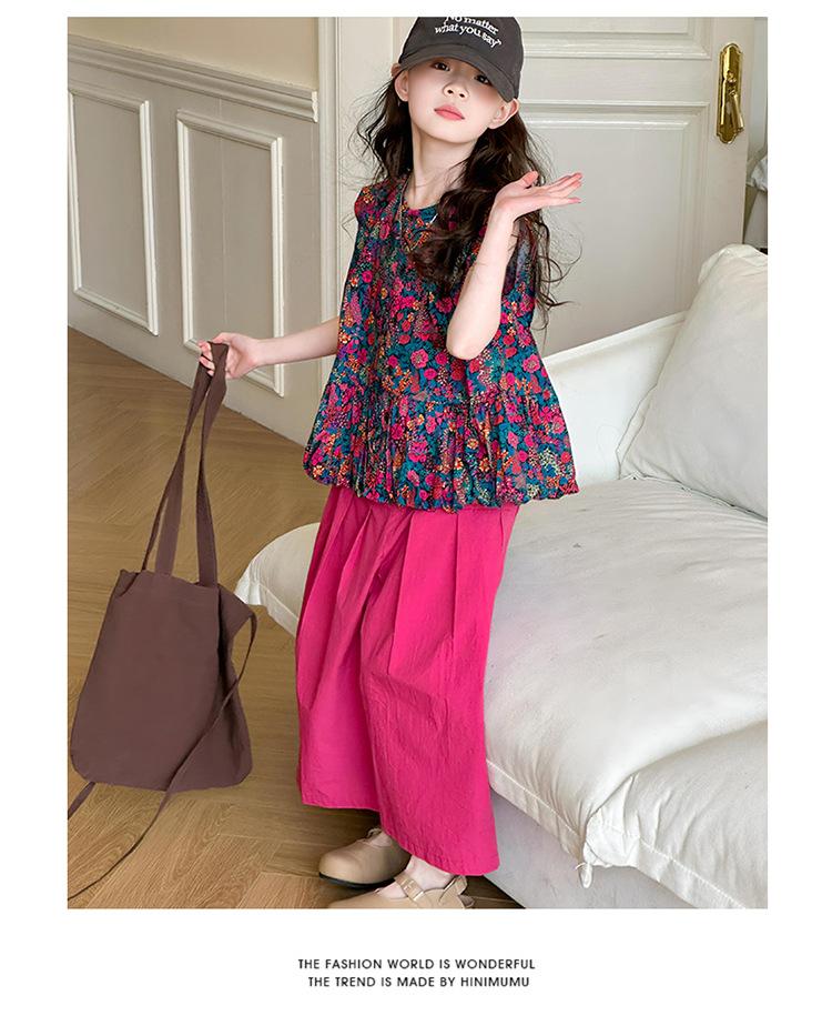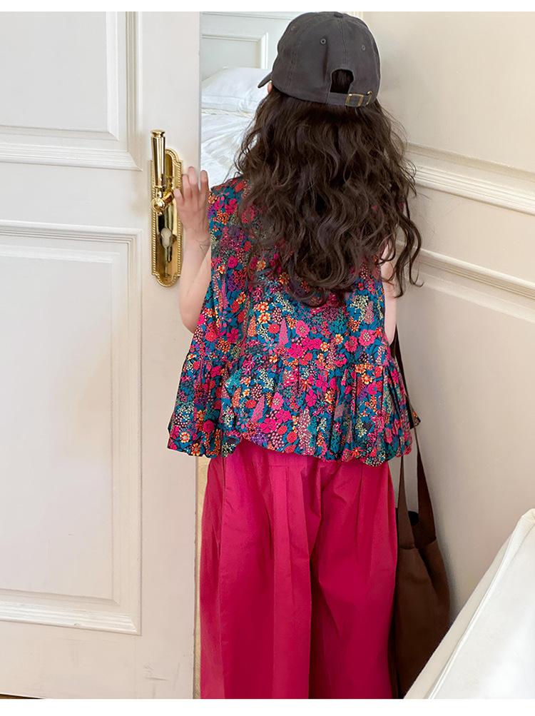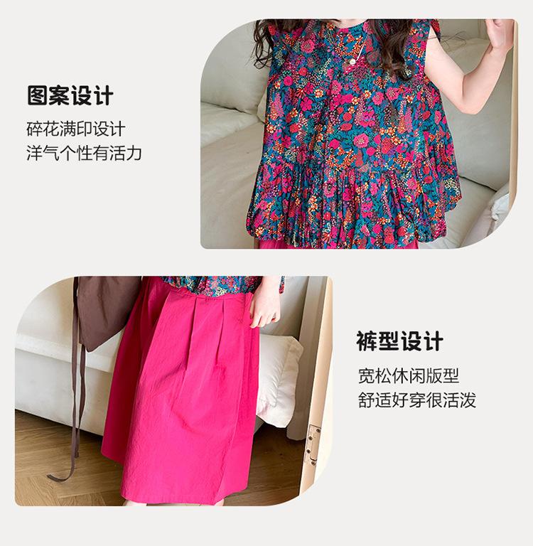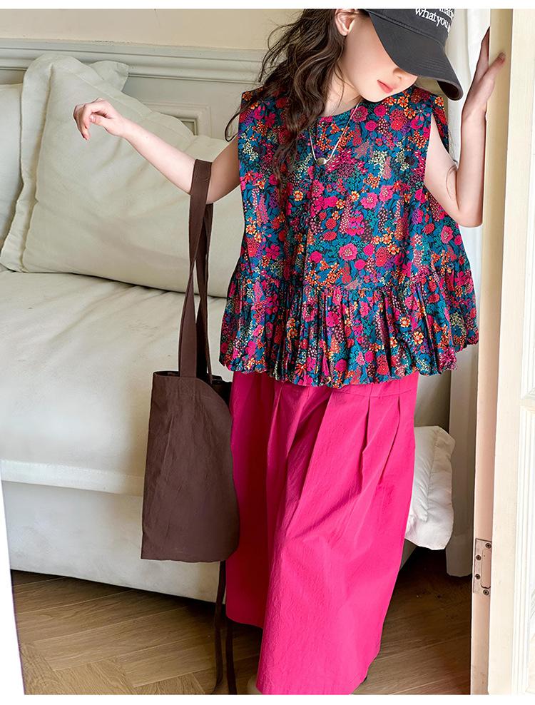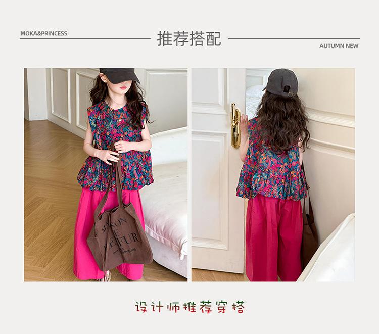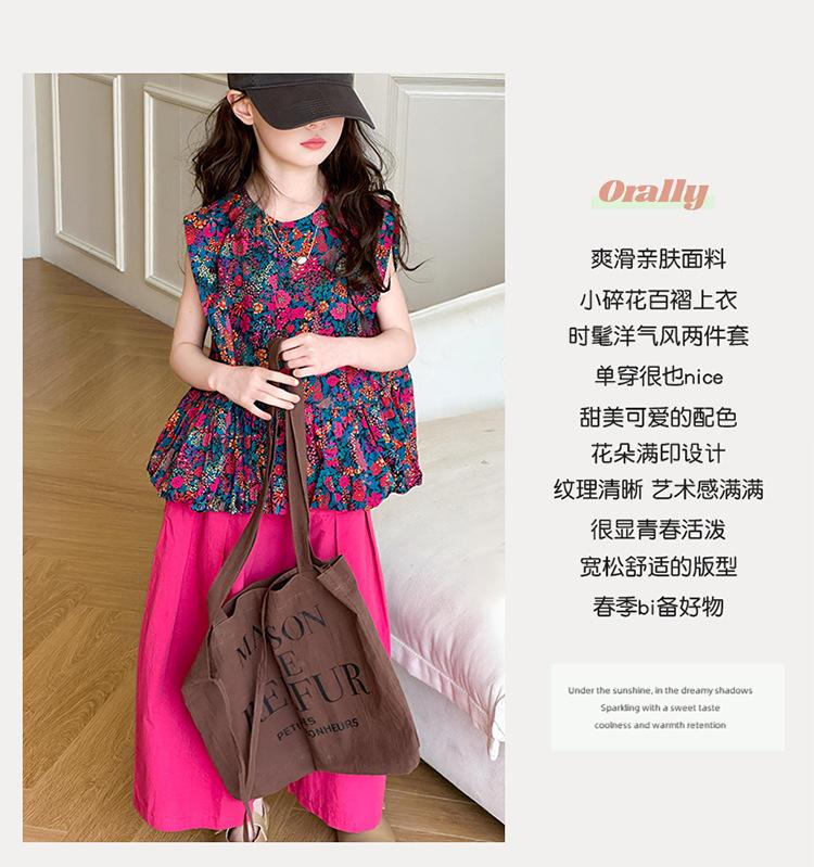 Traje de verano para niñas 2024, nuevo conjunto de dos piezas de pantalones anchos de pierna y chaleco floral de moda coreana para niños.