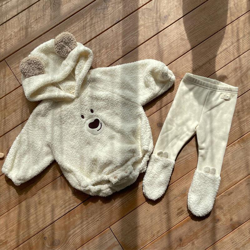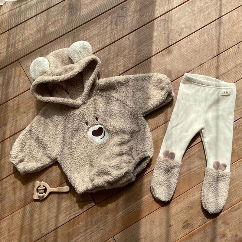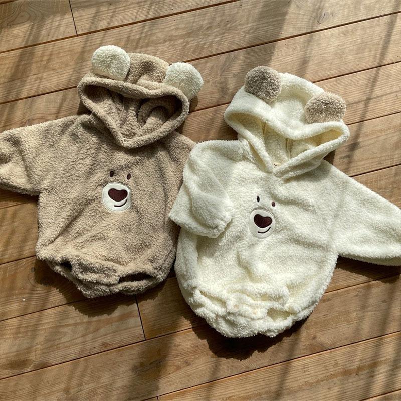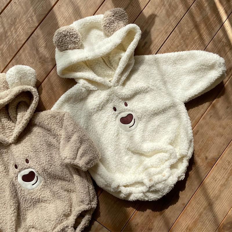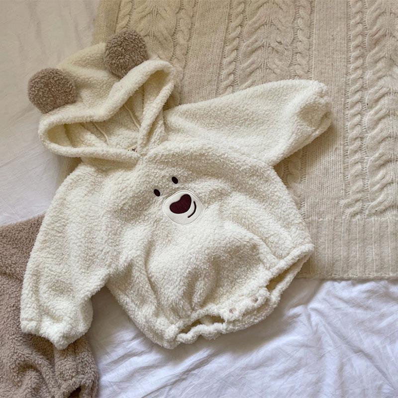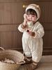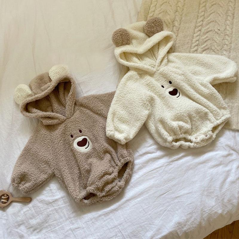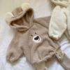Mono de invierno para bebés y niños pequeños, estilo coreano, con capucha suave de forro polar coral y bonitos dibujos animados.
