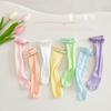 Medias a media pierna para niña primavera y verano delgadas de algodón medias de princesa para niños lazo de encaje estilo coreano medias para bebé