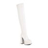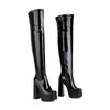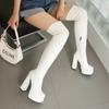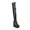 Botas por encima de la rodilla para mujer, con punta cuadrada, tacón grueso, plataforma súper alta, botas altas para mujer, botas finas elásticas con cremallera lateral negra