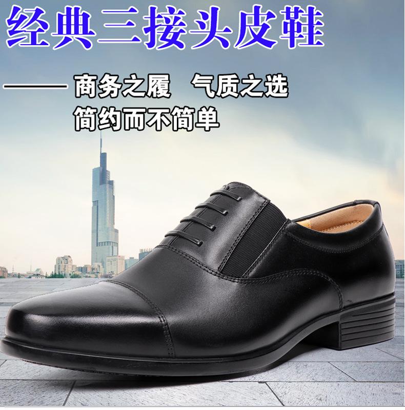 Zapatos de cuero de tres articulaciones para hombre, zapatos de cuero formales de negocios, zapatos de cuero de corte bajo para primavera y otoño, zapatos de trabajo negros de un paso al por mayor