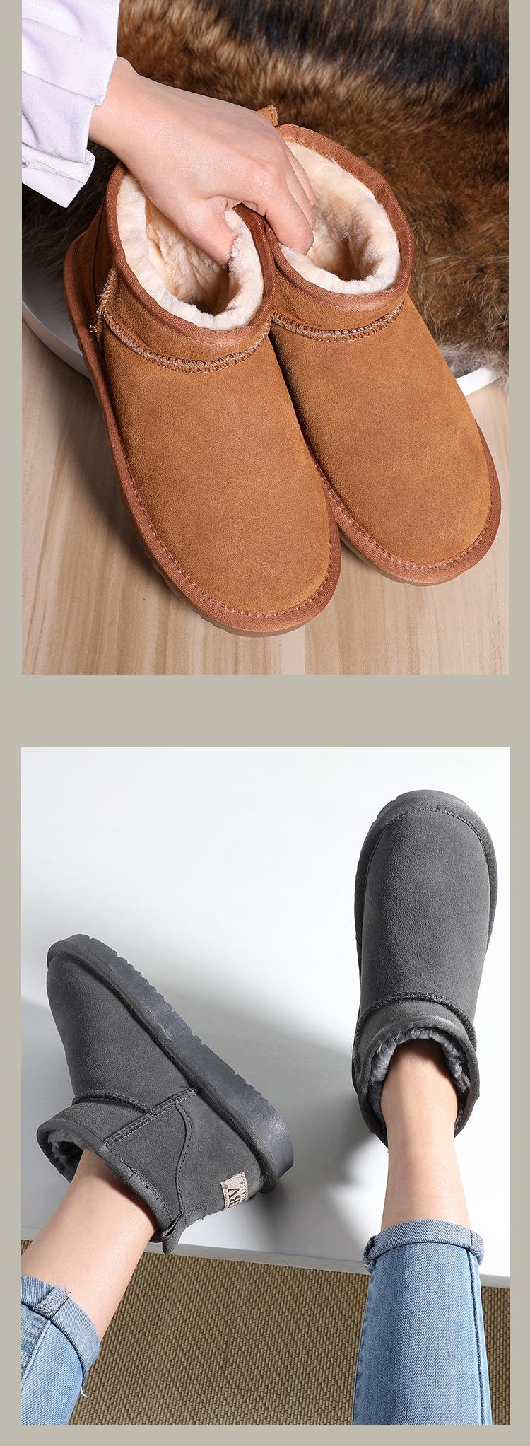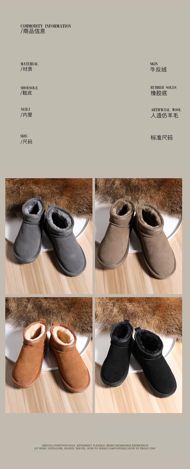 Compra [Liquidación de tallas rotas] Mini botas de nieve para mujer, de piel, con forro polar, gruesas, cálidas, cortas, de algodón, de piel de vaca, al por mayor al por mayor en Joom.pro