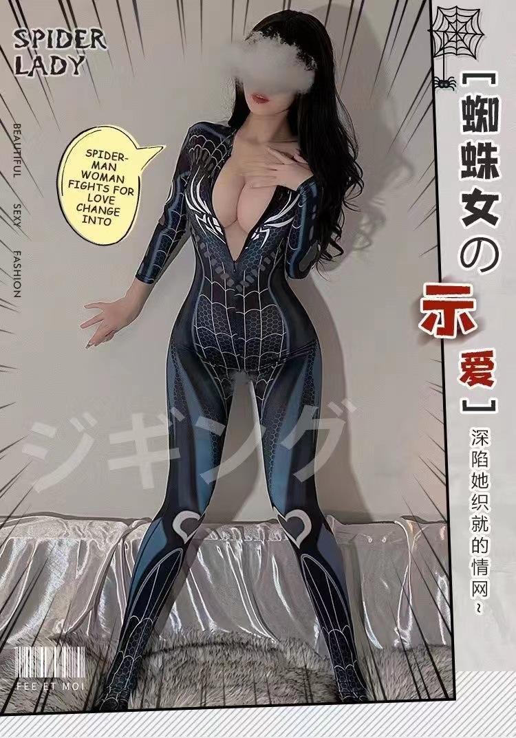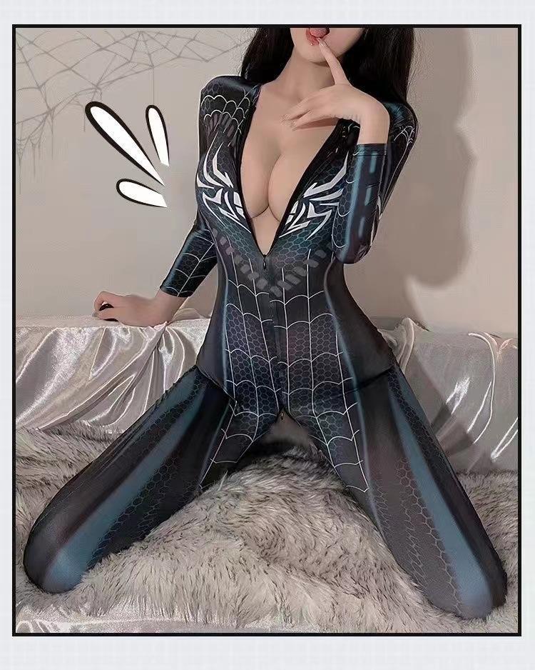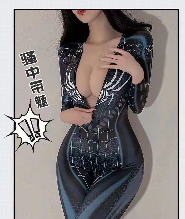 Cosplay Spider-Man Uniforme Sexy Alta Elasticidad Tentación Abierto Sin Equipo Mono Ajustado Mujeres Apasionadas