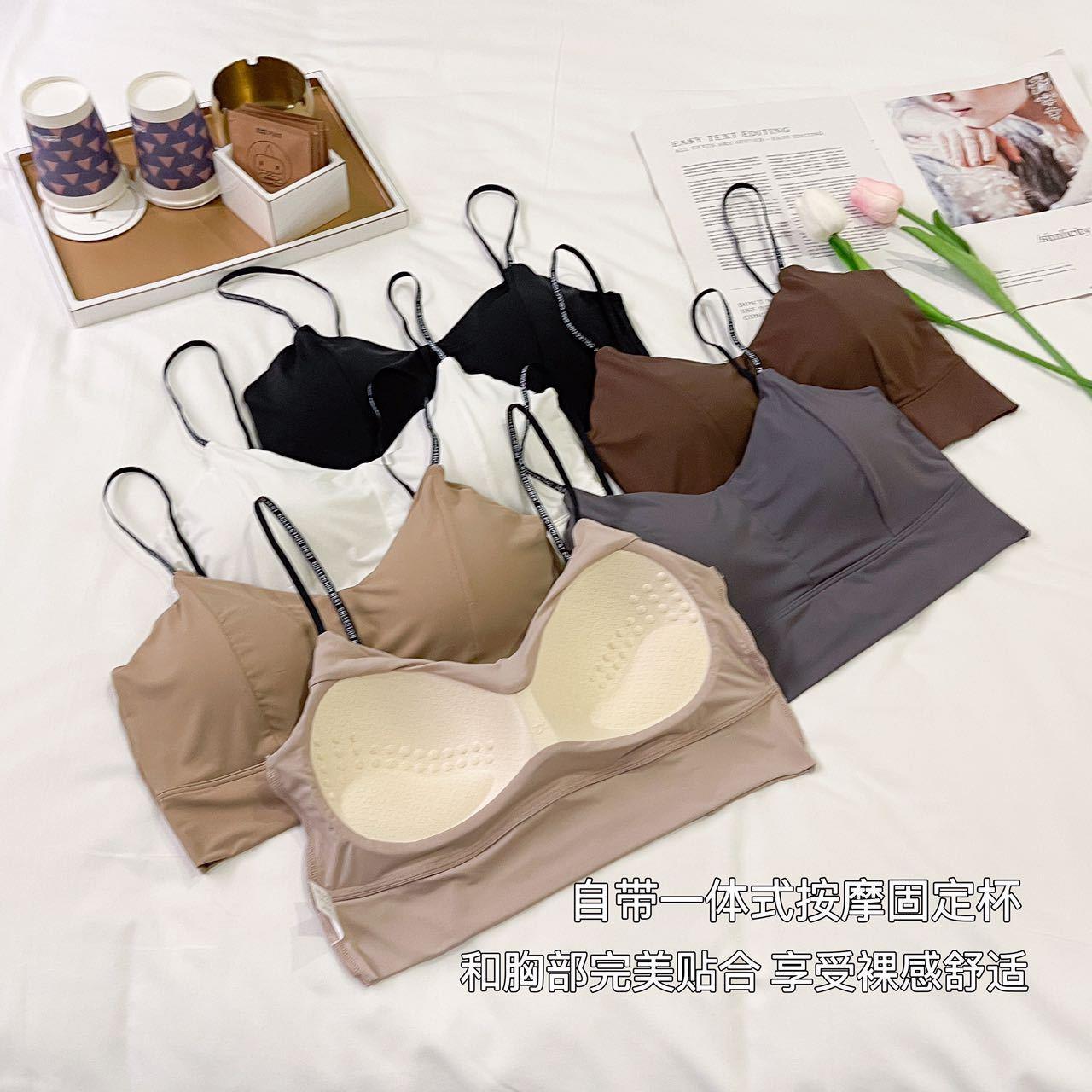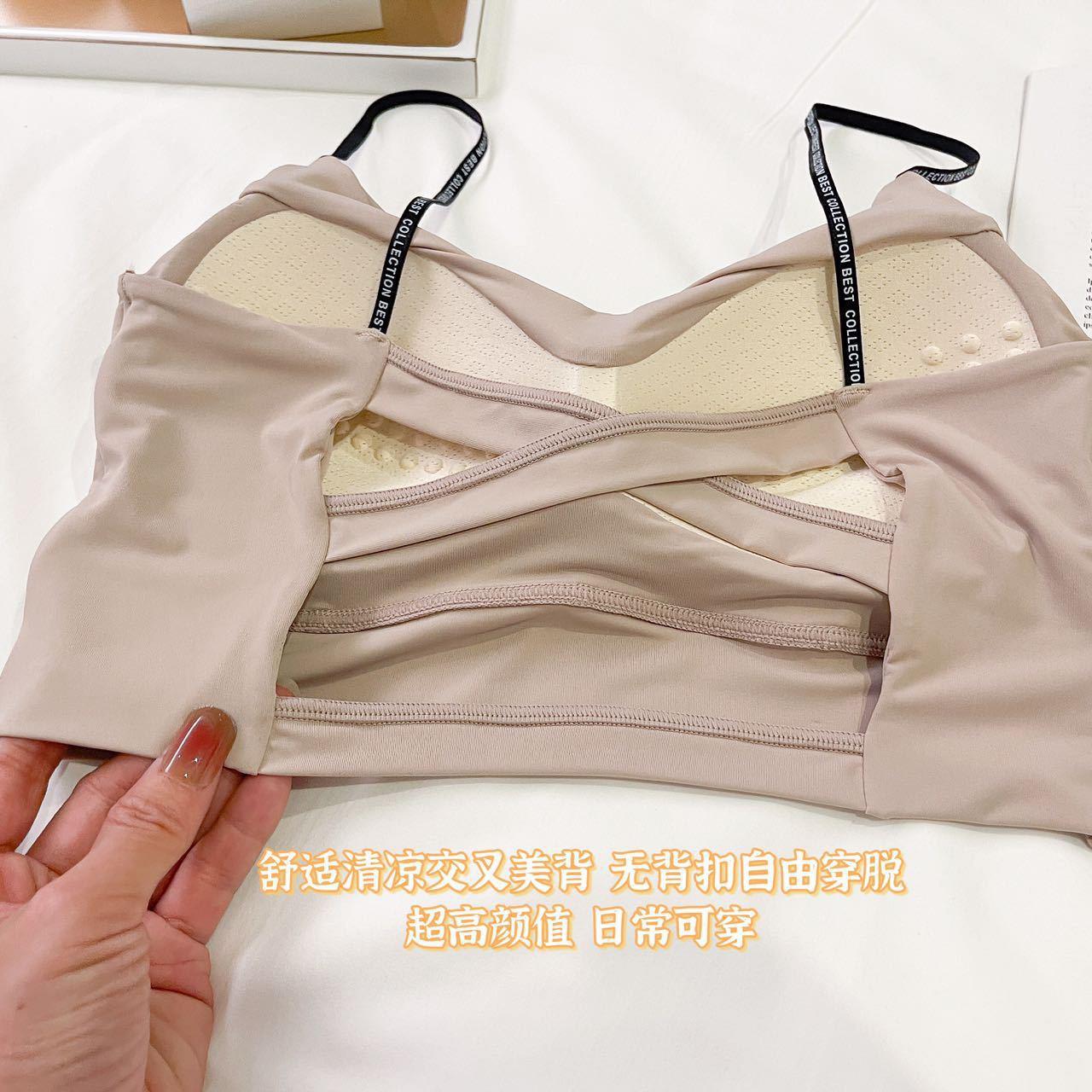 Chaleco de seda de hielo de una pieza con almohadillas fijas en la espalda, sin base de aro de acero, top de tubo que combina con todo, ropa interior fresca para mujer