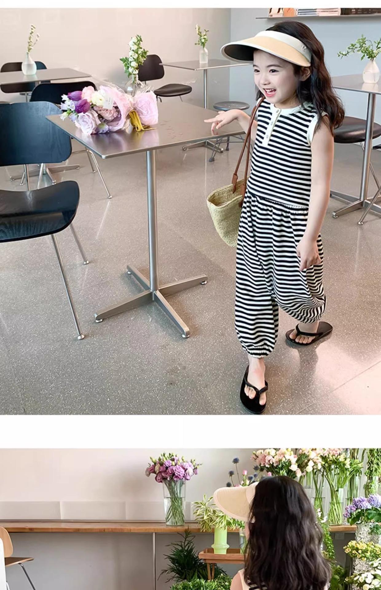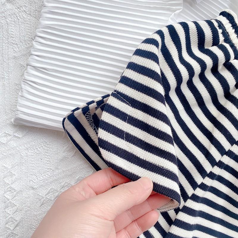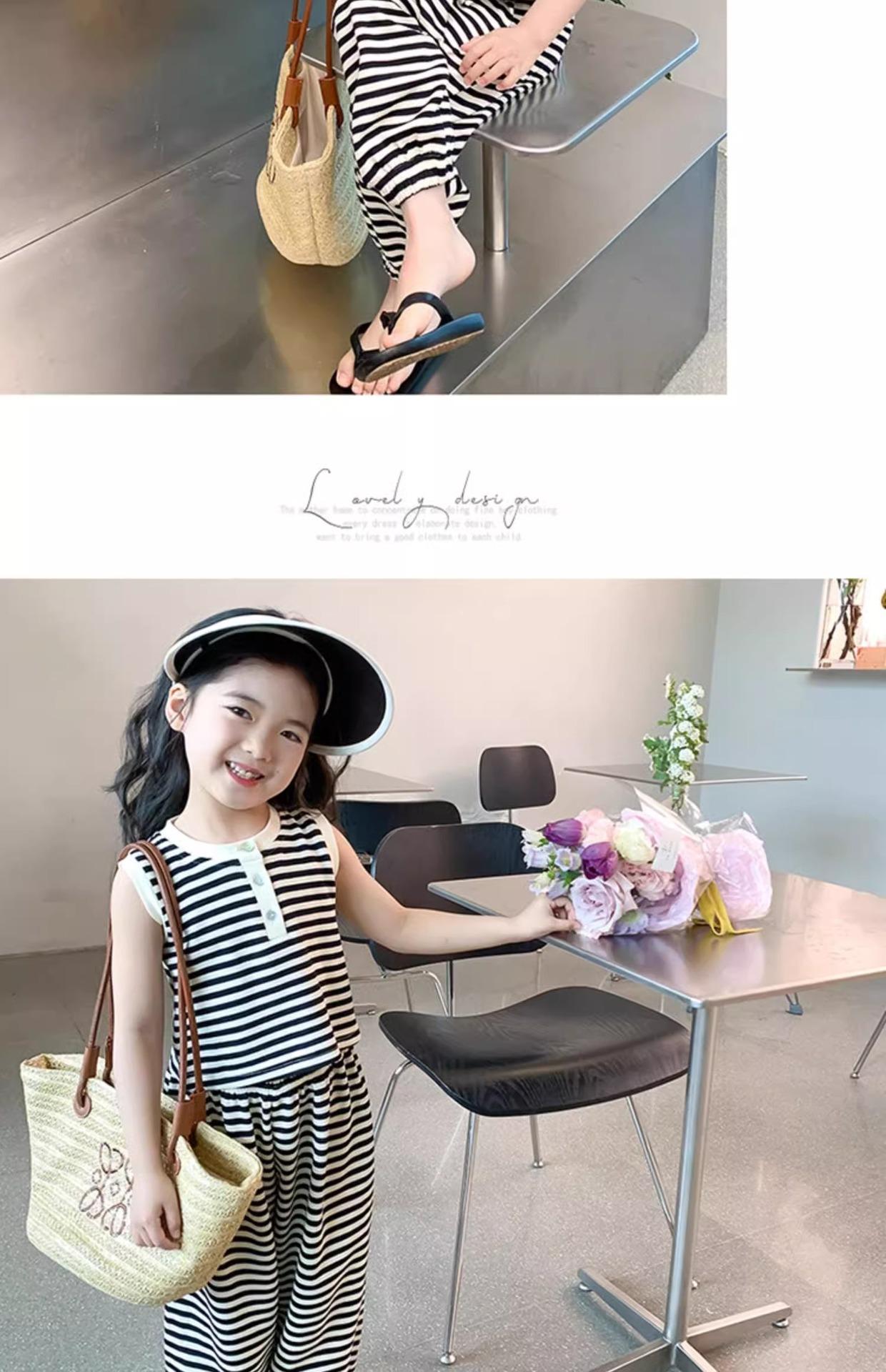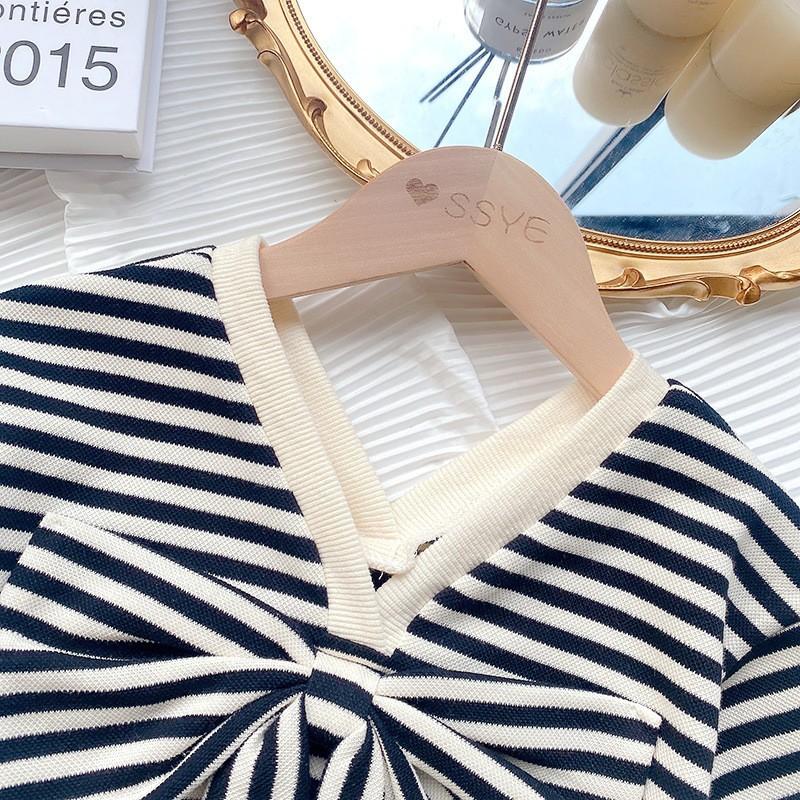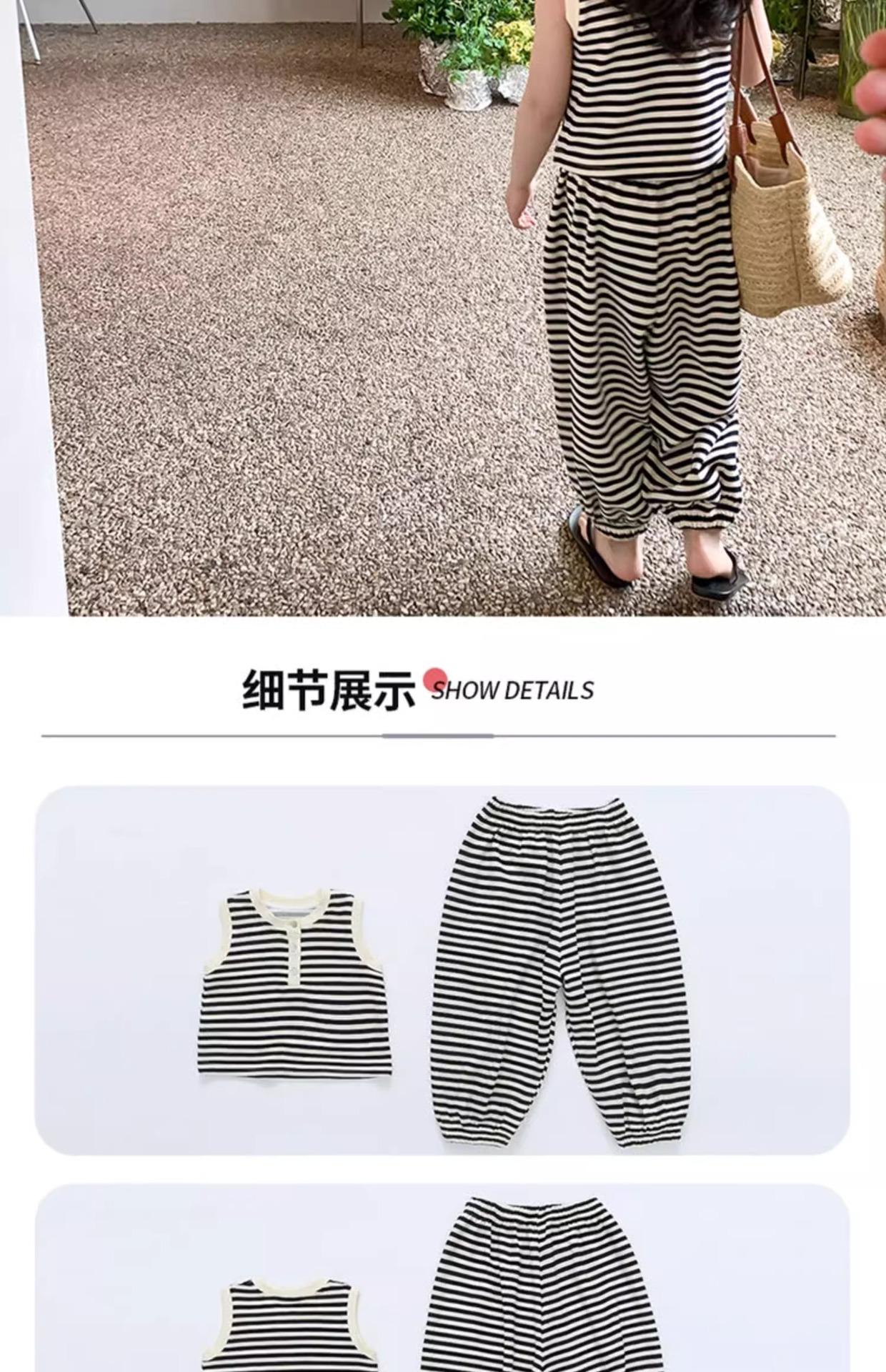 Ropa para niños y mujeres, verano 2025, nuevo traje de rayas de moda para niñas, camiseta de manga corta con lazo y pantalones cortos.