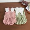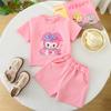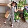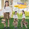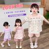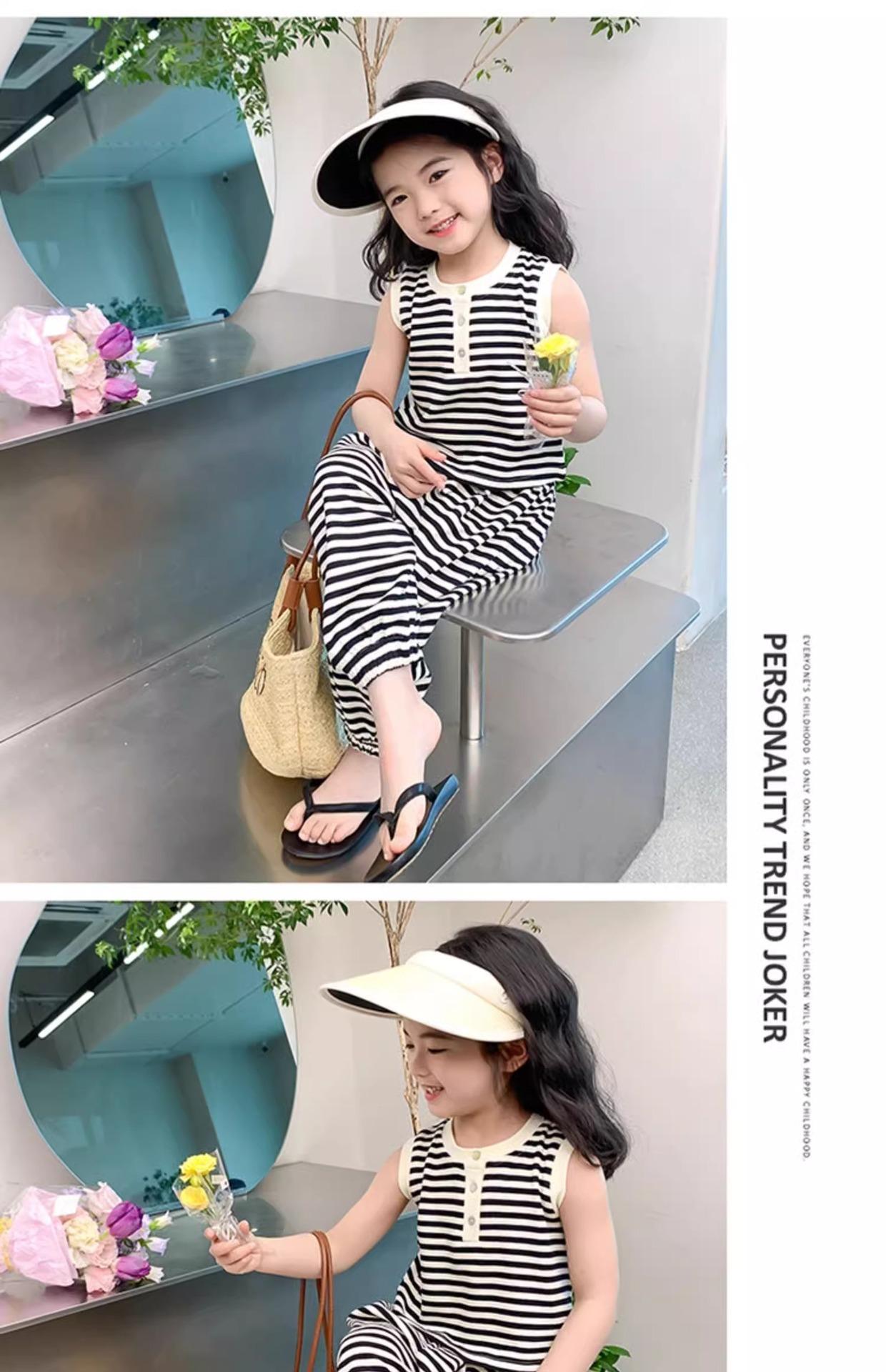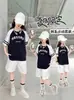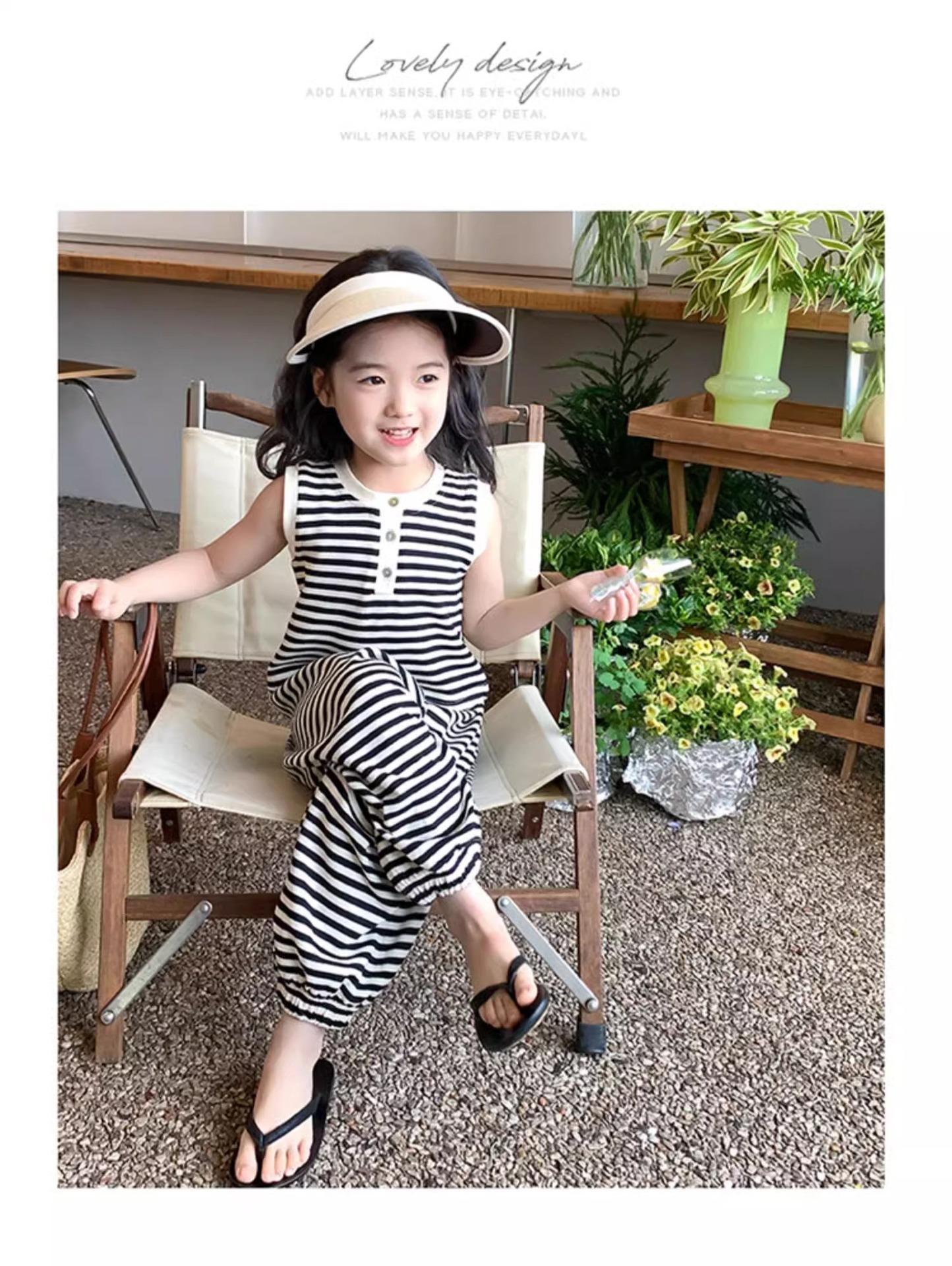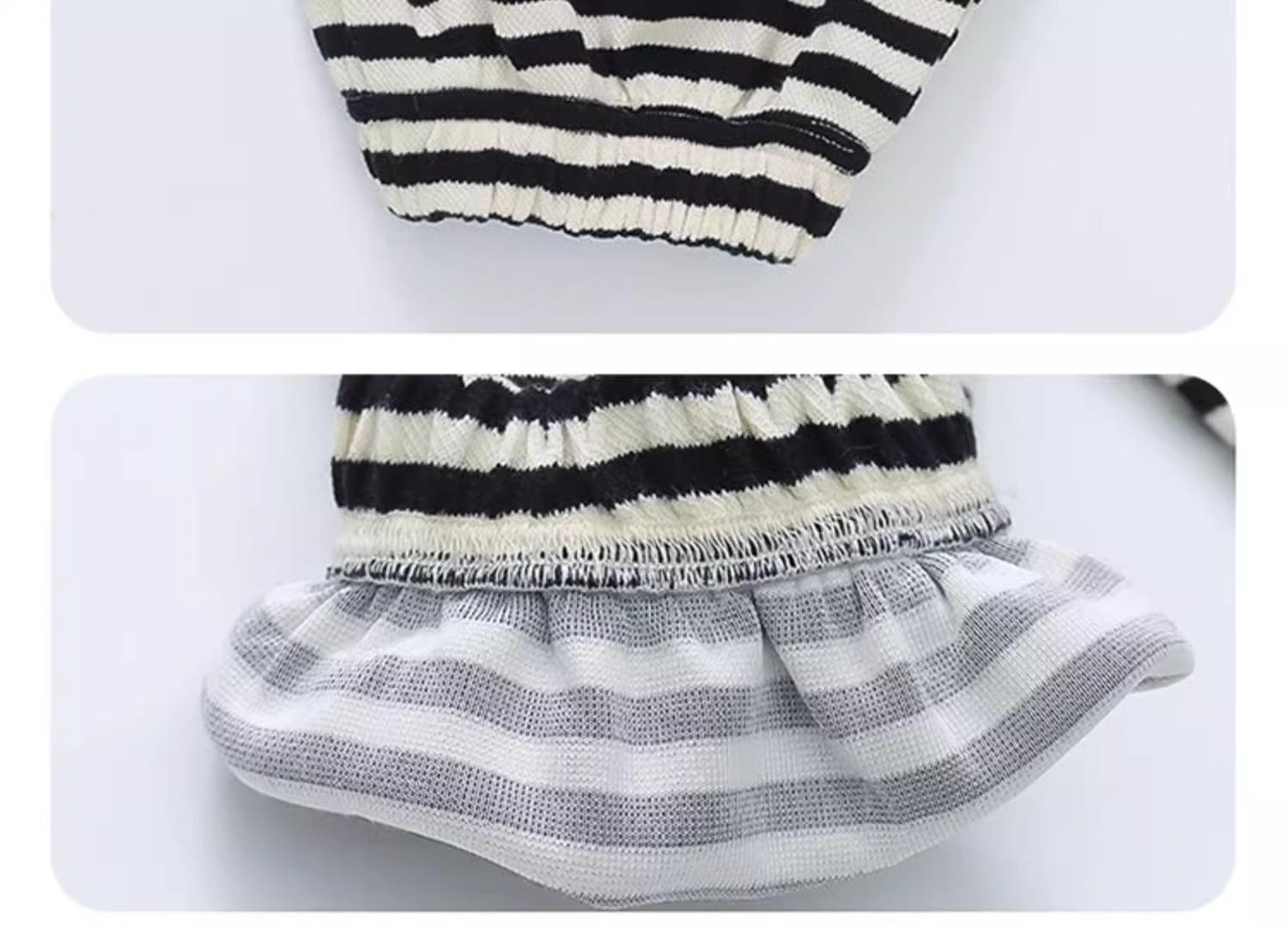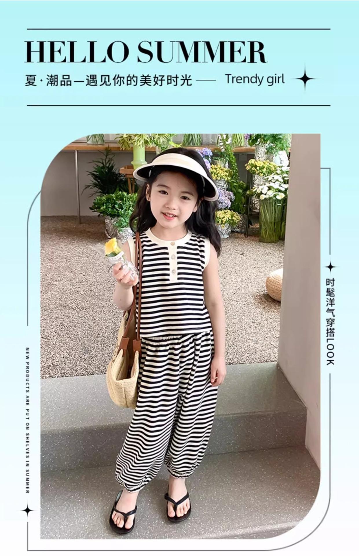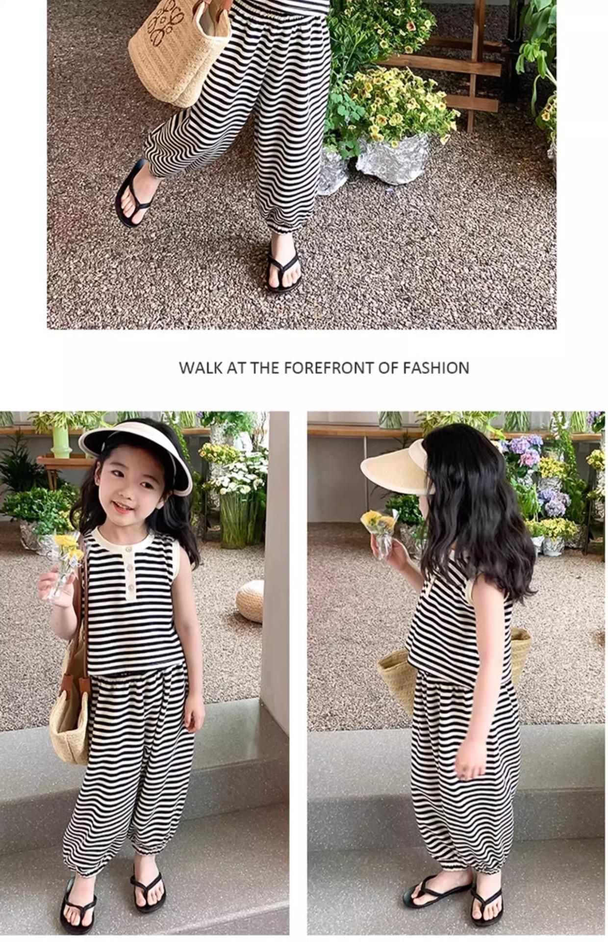 Ropa para niños y mujeres, verano 2025, nuevo traje de rayas de moda para niñas, camiseta de manga corta con lazo y pantalones cortos.