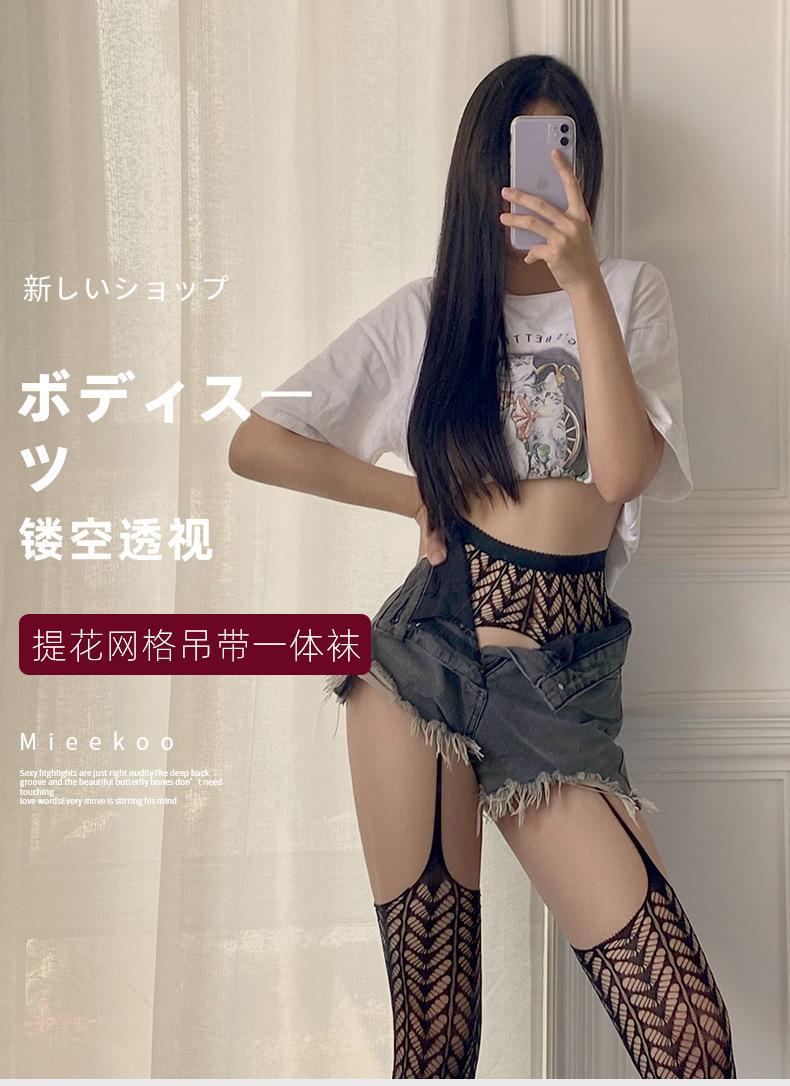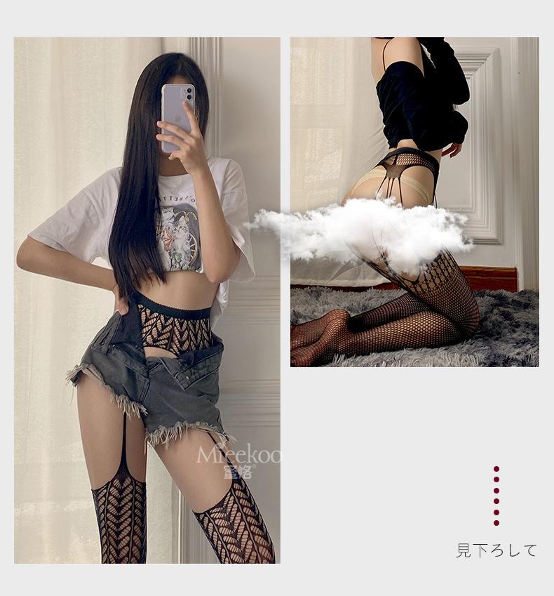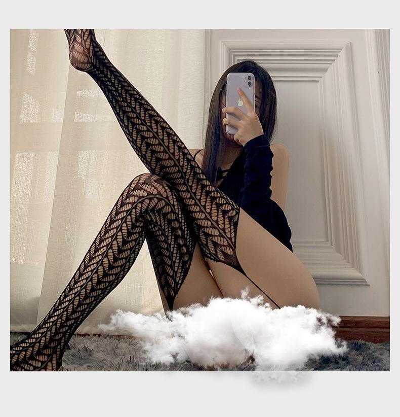 Medias de seda Honey Fun para mujer, abiertas, de jacquard, con rejilla, de una pieza, con entrepierna abierta, 4424