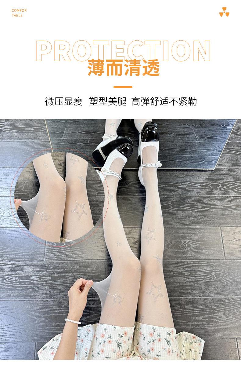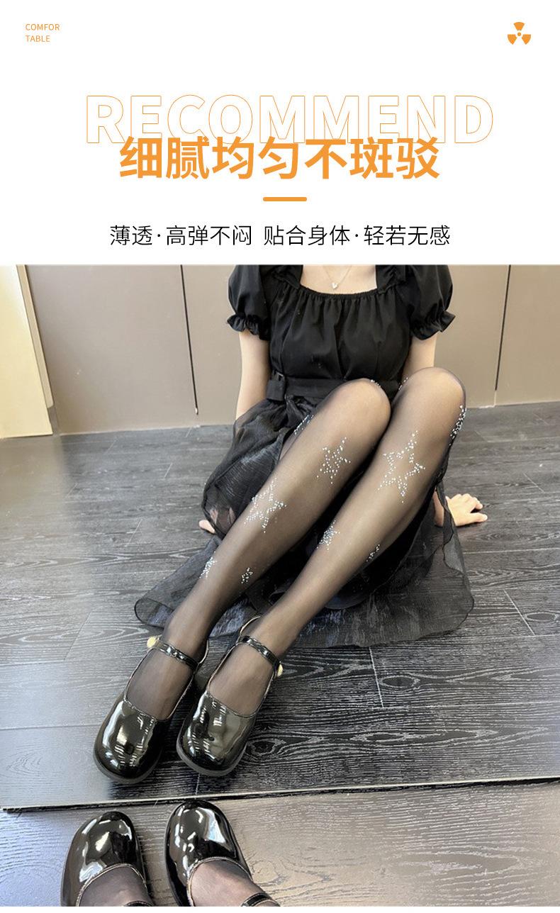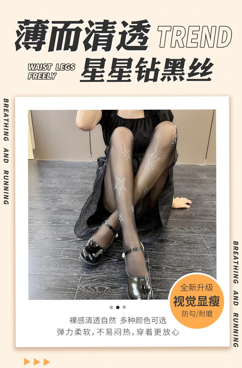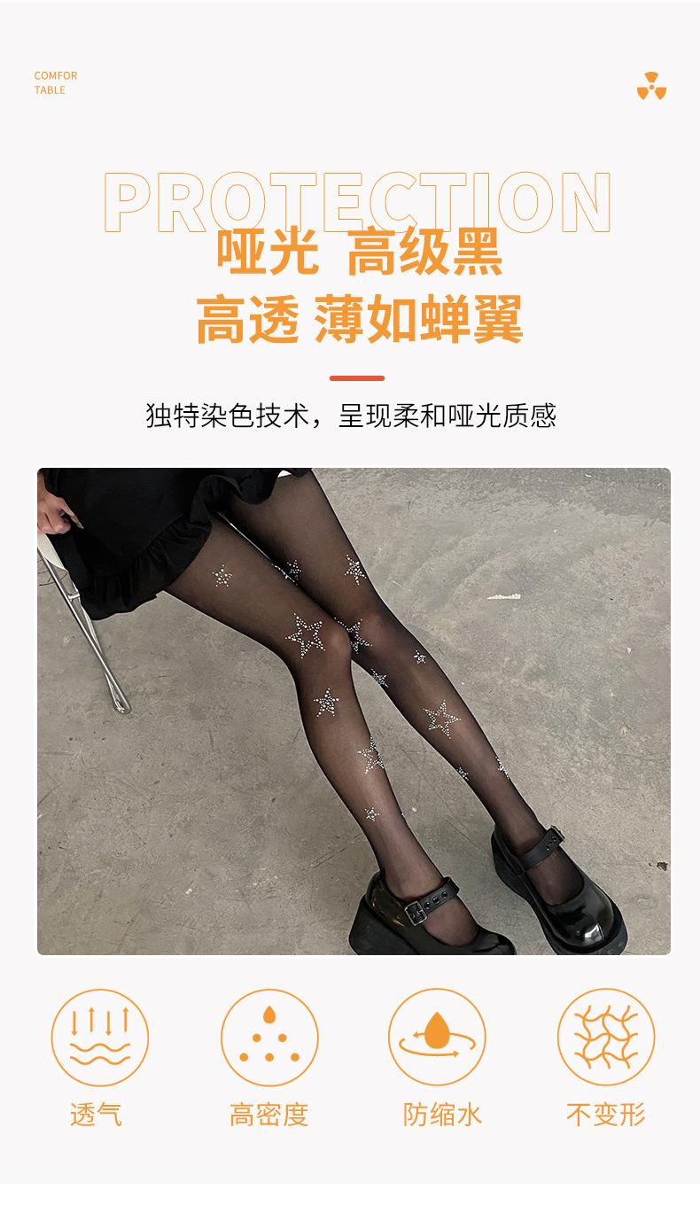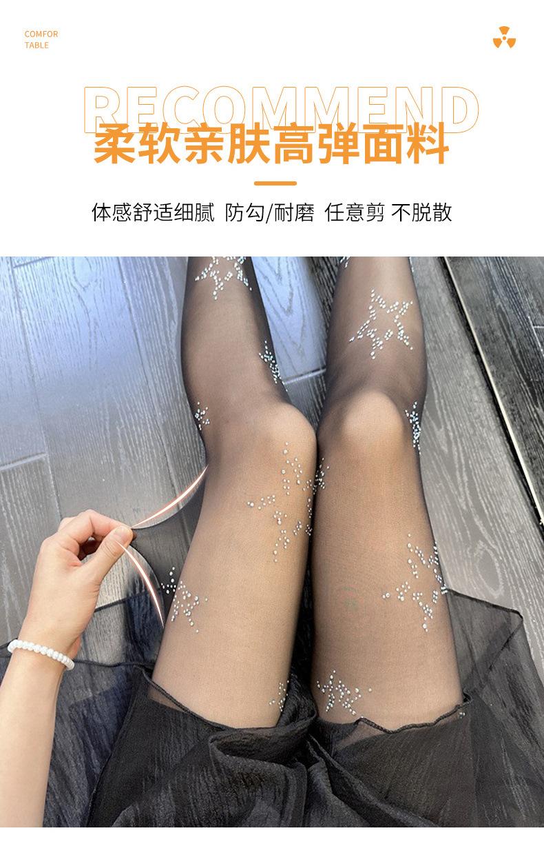 Medias de Diamantes Calientes de Estrella para Mujer, Cualquier Corte, Estilo Lujuria Pura Sexy Estrella de Cinco Puntas Diamante Brillante Medias Negras, Chica Antidesprendimiento