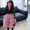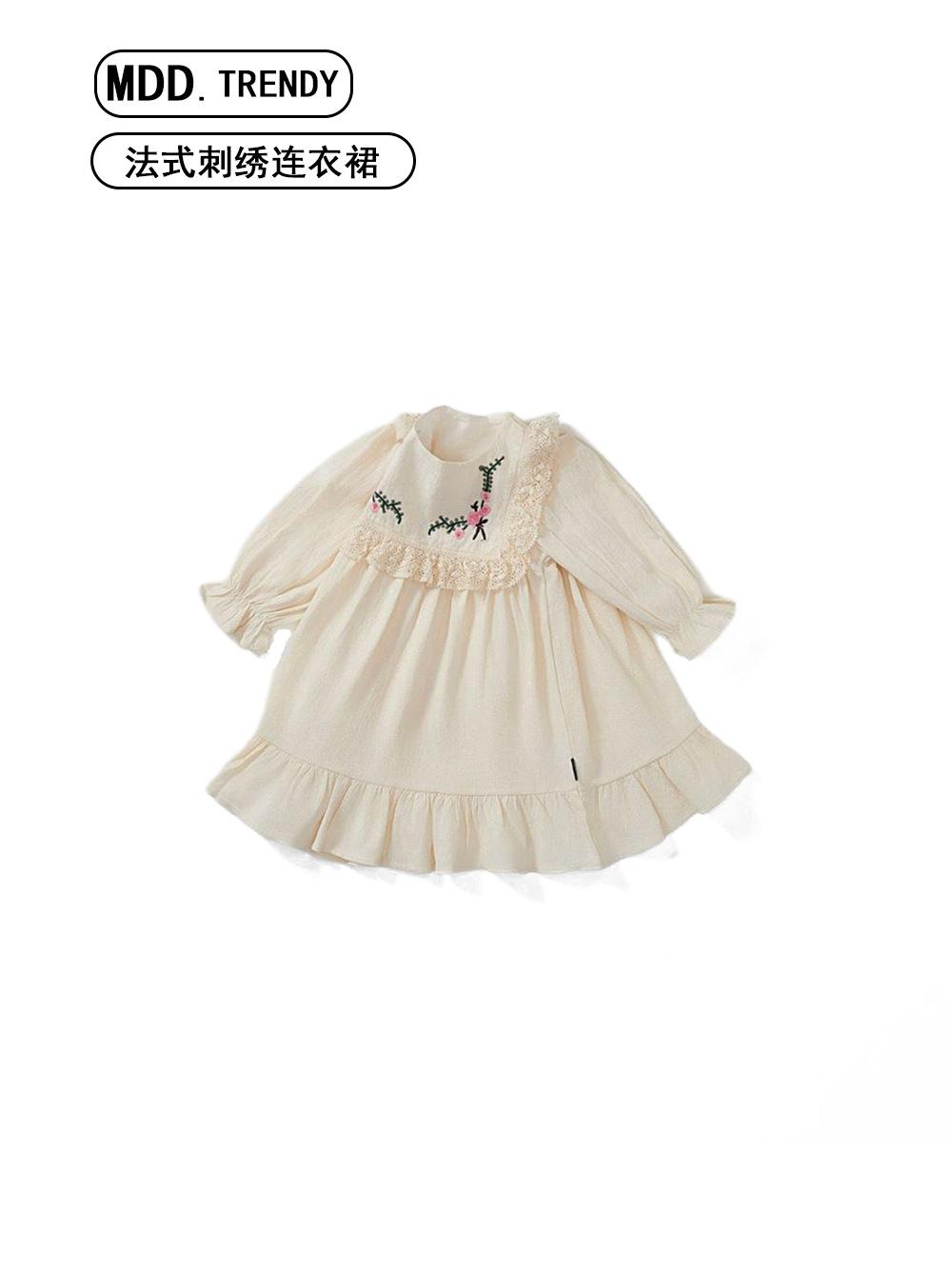 Vestido bordado para niñas MDD, primavera 2024, nuevo vestido de princesa con mangas abullonadas y encaje francés para niñas