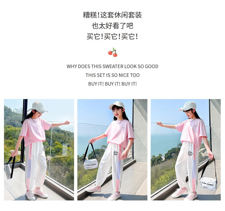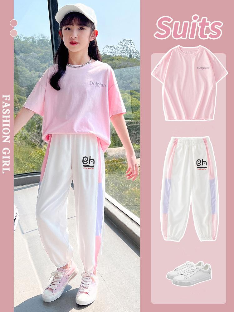 Traje de manga corta para niña, estilo coreano de moda de verano 2023, nuevo estilo popular en internet, ropa informal para niños de estilo extranjero.