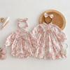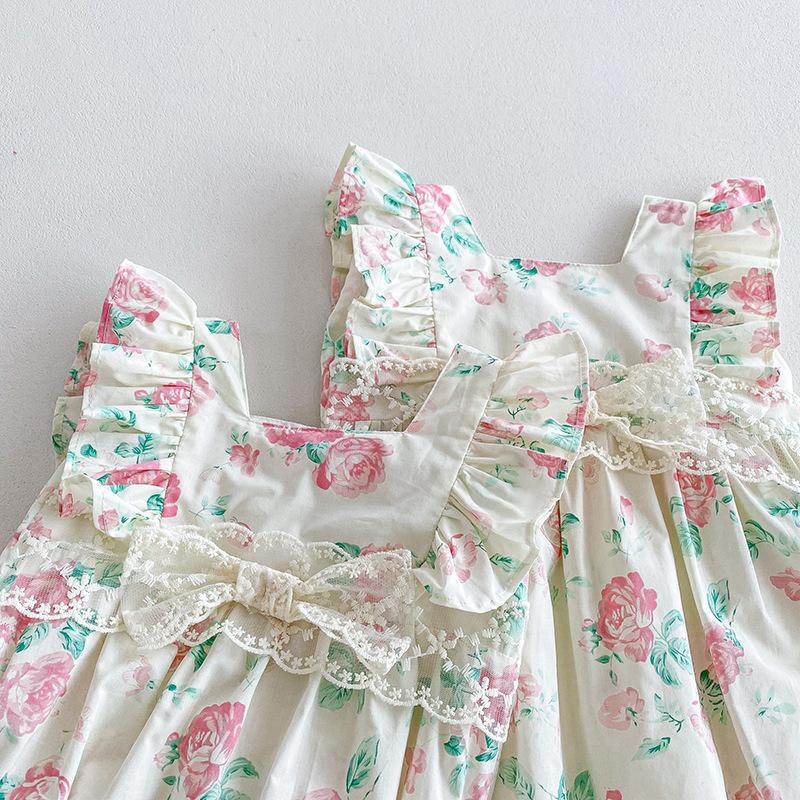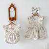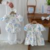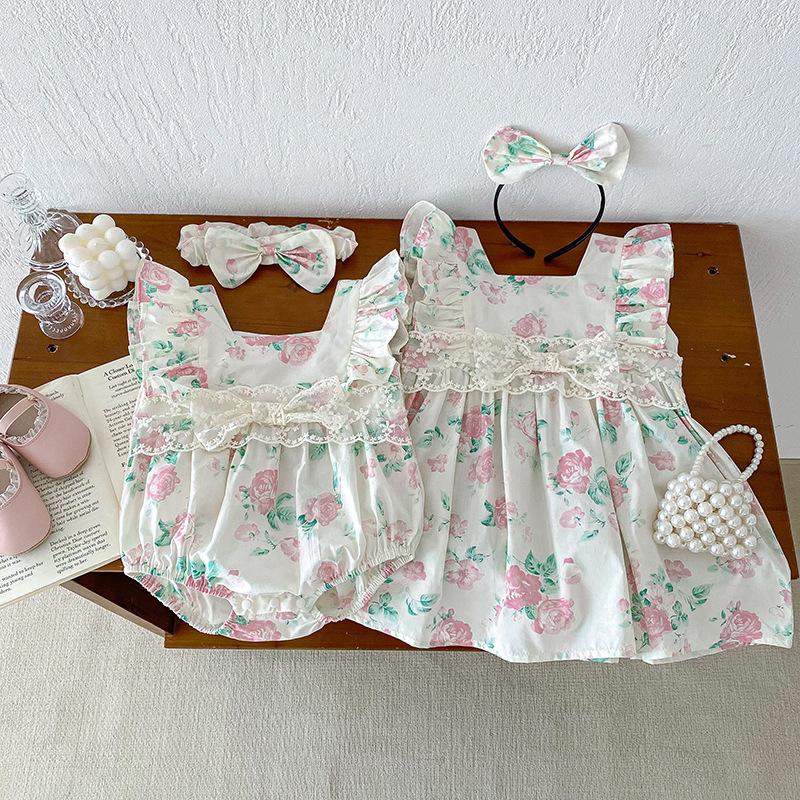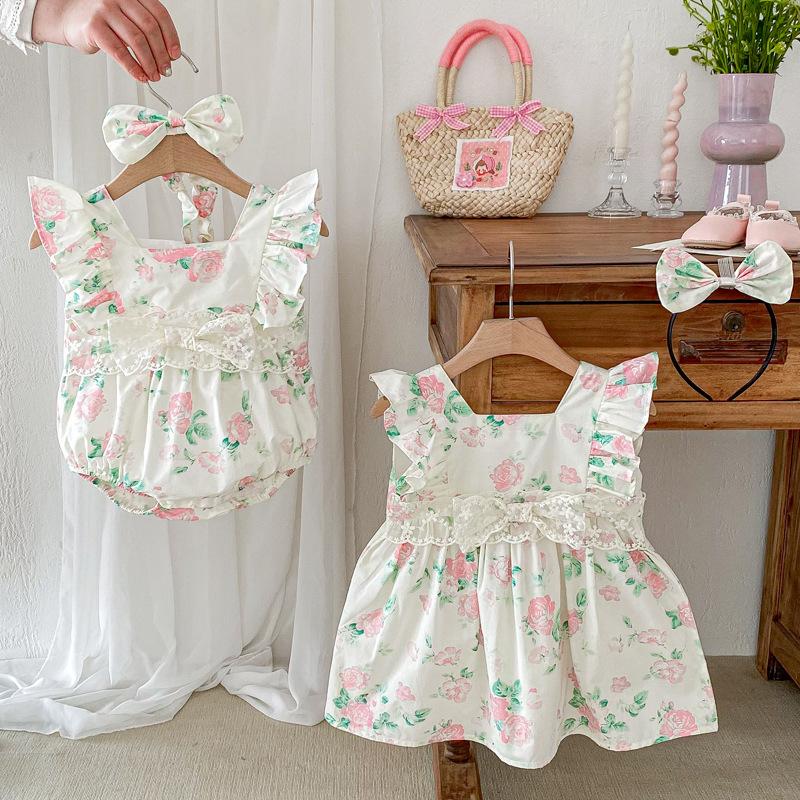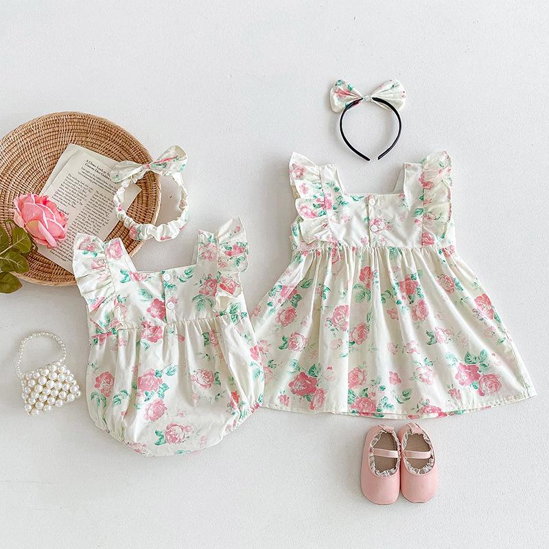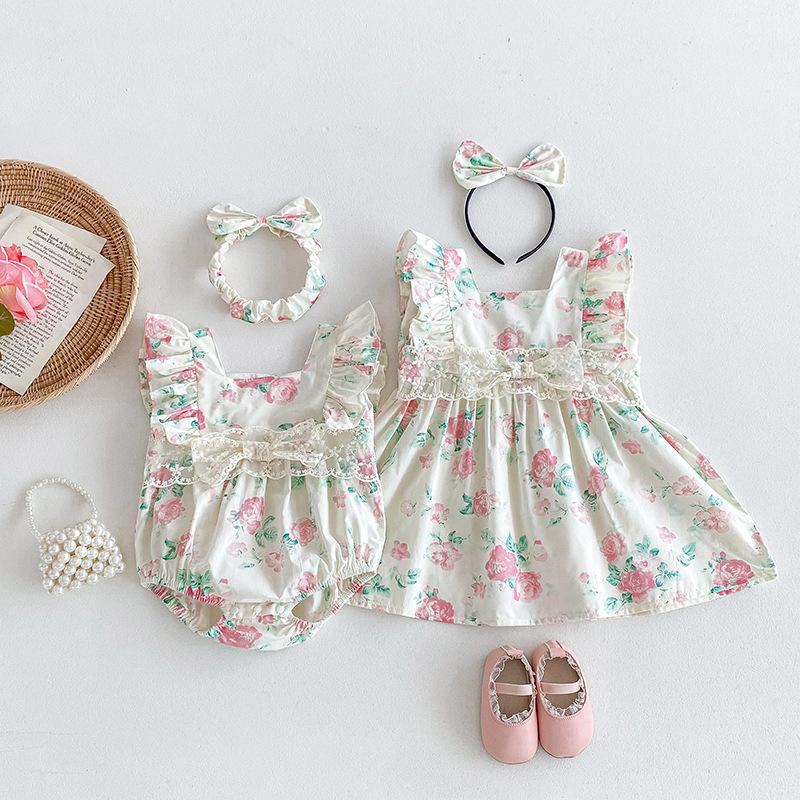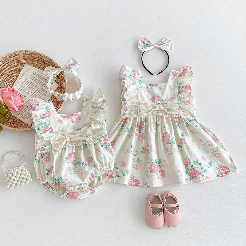 Vestido de Verano Nuevo Estilo Coreano para Bebé Niña Floral Manga Corta Mameluco para Bebé Niña Conjunto de Hermana
