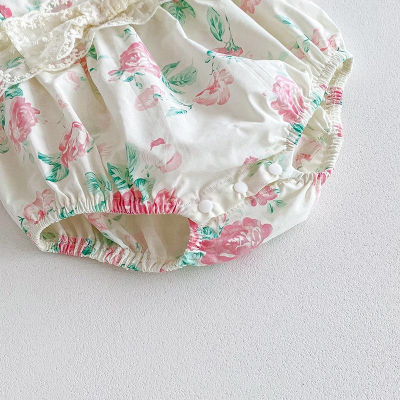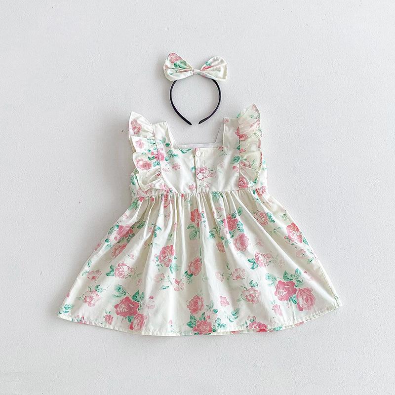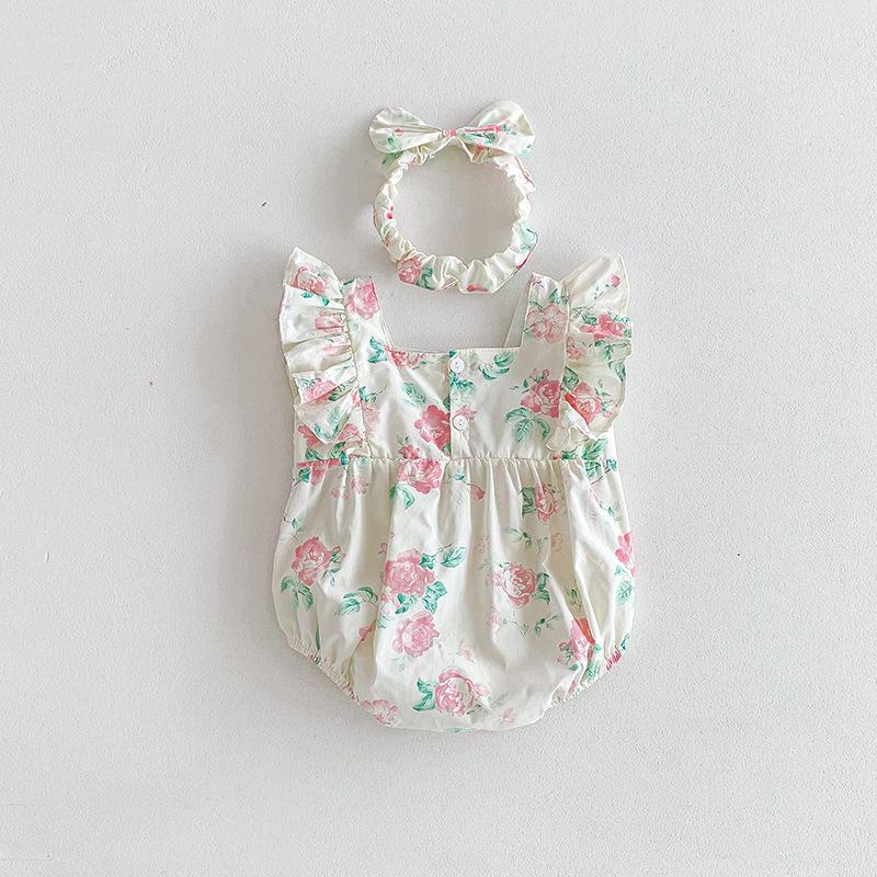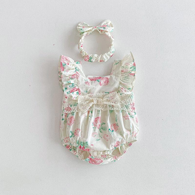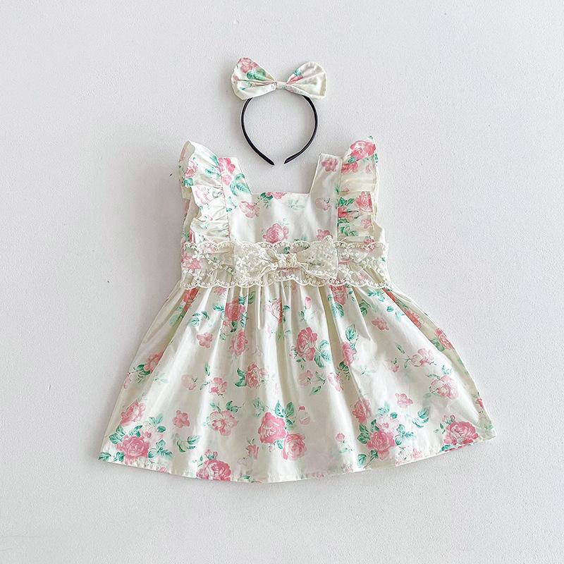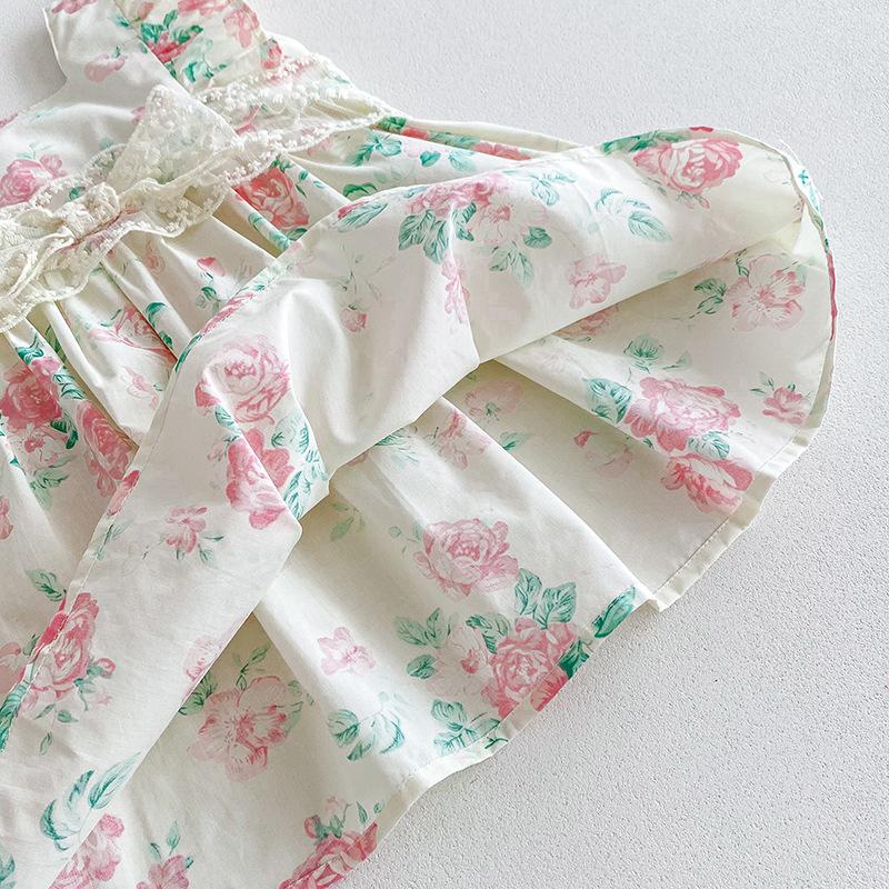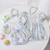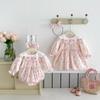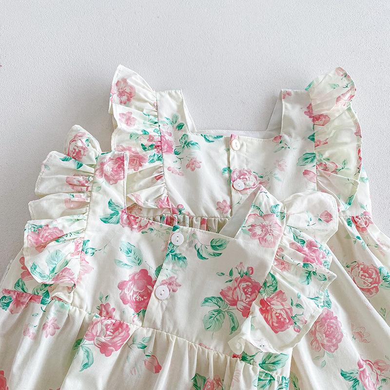 Vestido de Verano Nuevo Estilo Coreano para Bebé Niña Floral Manga Corta Mameluco para Bebé Niña Conjunto de Hermana