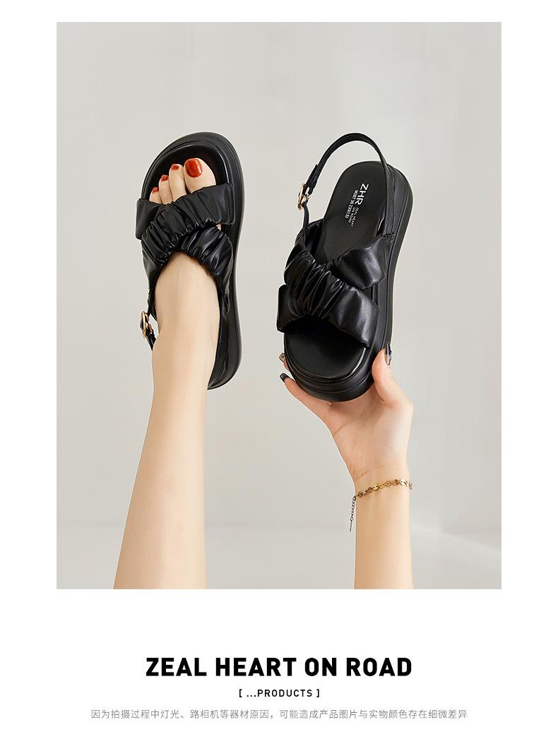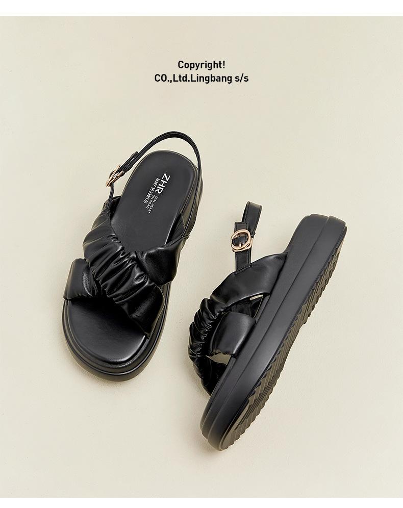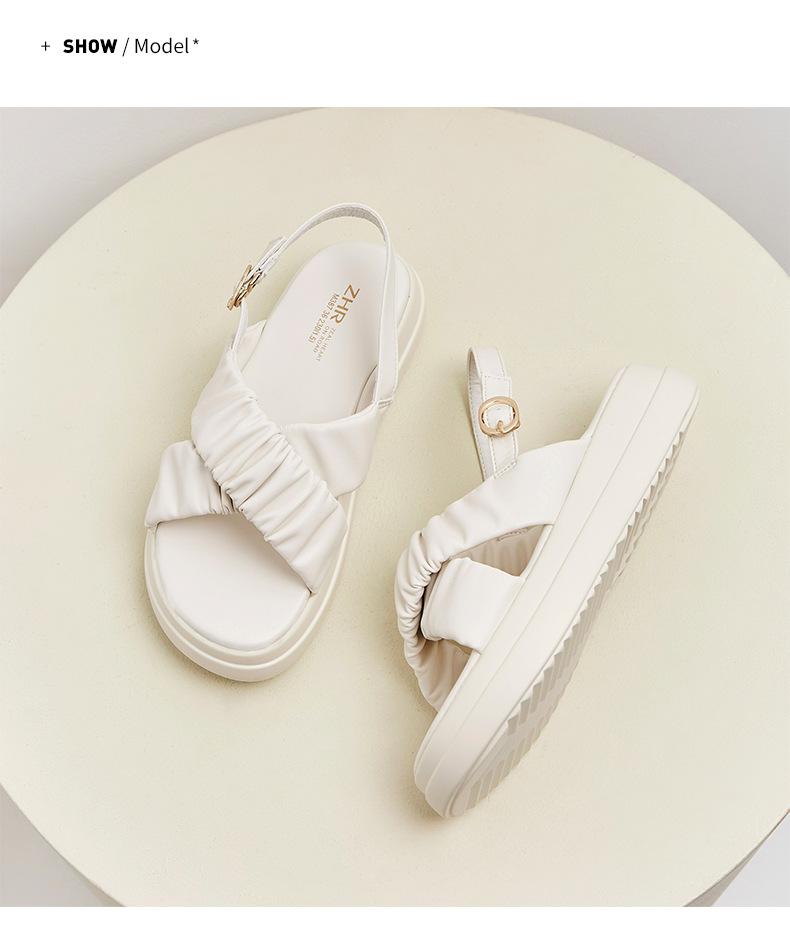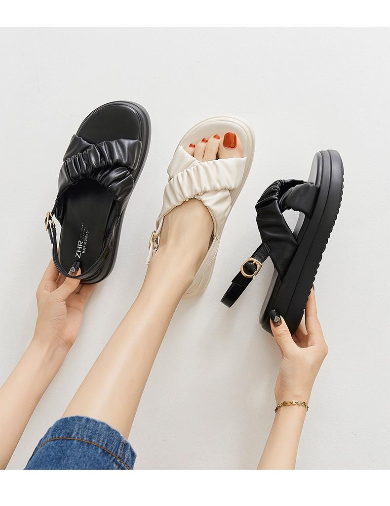 Sandalias ZHR para mujer, novedad de verano 2023, zapatos de playa informales con plataforma y pliegues, combinables con todo, para mujer
