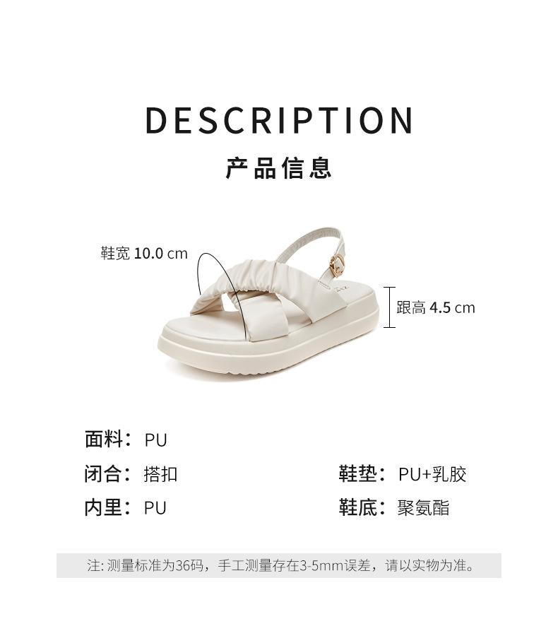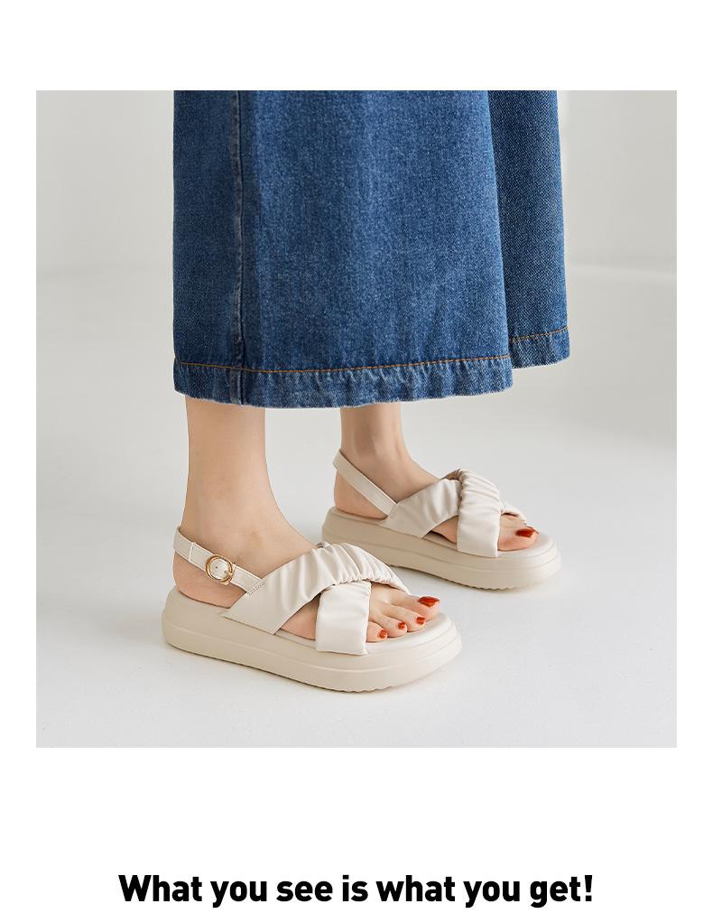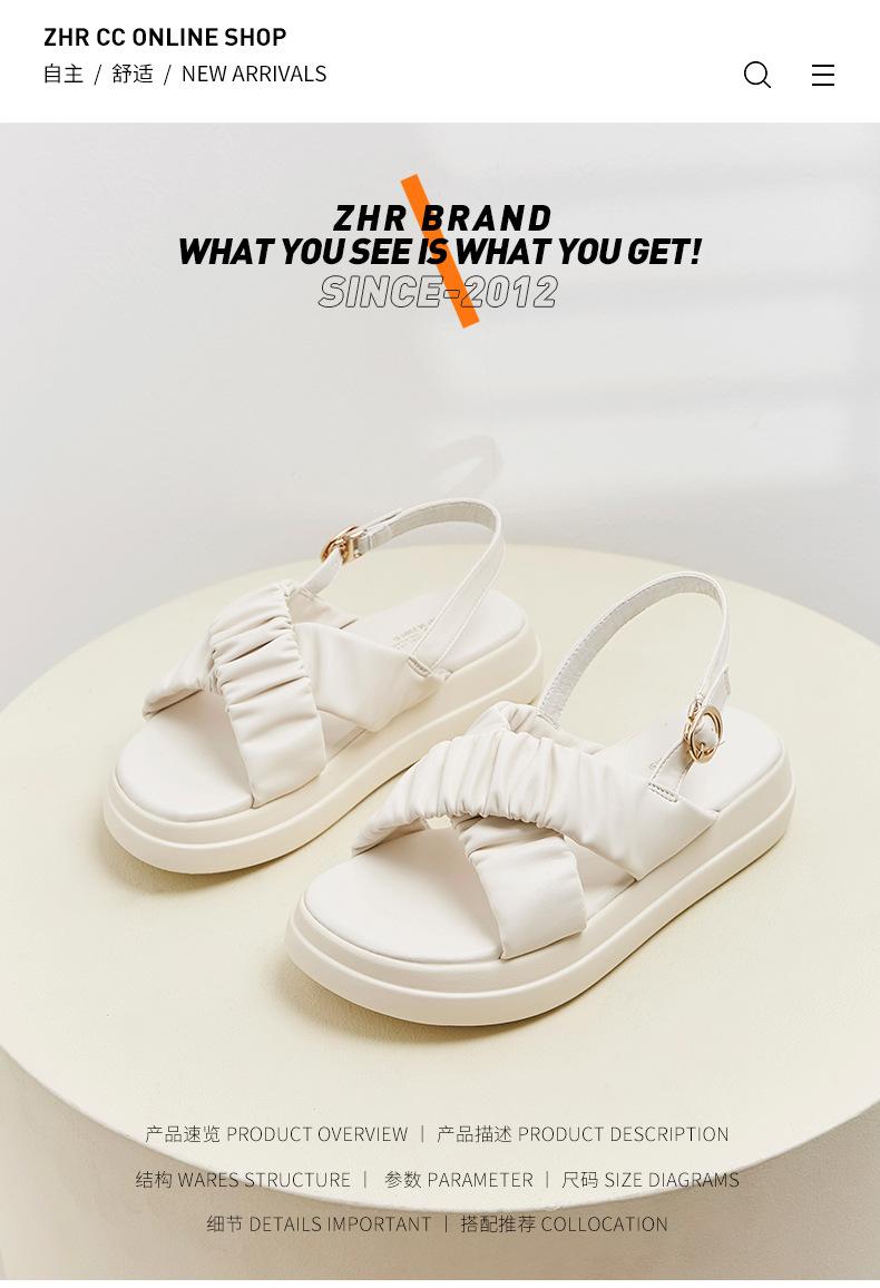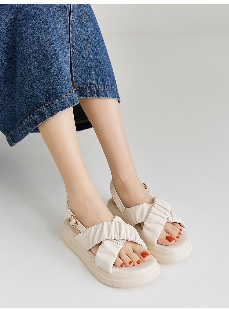 Sandalias ZHR para mujer, novedad de verano 2023, zapatos de playa informales con plataforma y pliegues, combinables con todo, para mujer
