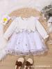 Vestido de primavera para niña, exquisito vestido de princesa con encaje floral bordado, vestido de primavera para niña pequeña con mangas largas, vestido largo para niña pequeña