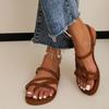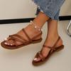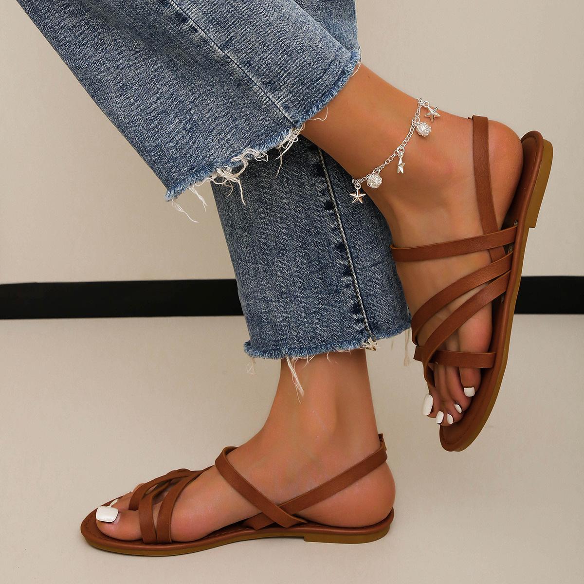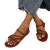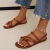 Sandalias de mujer de comercio exterior de talla grande 2024, nuevo estilo, estilo retro, con hebilla, planas y tiras cruzadas, para playa