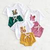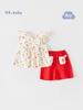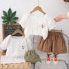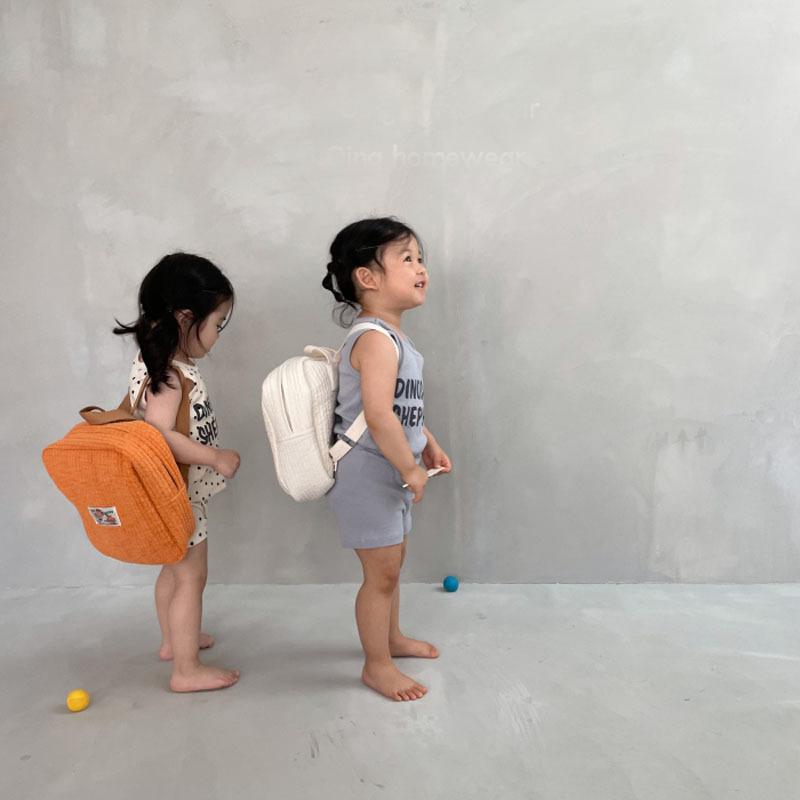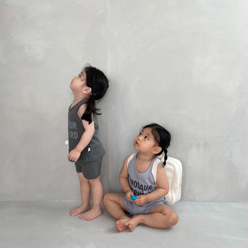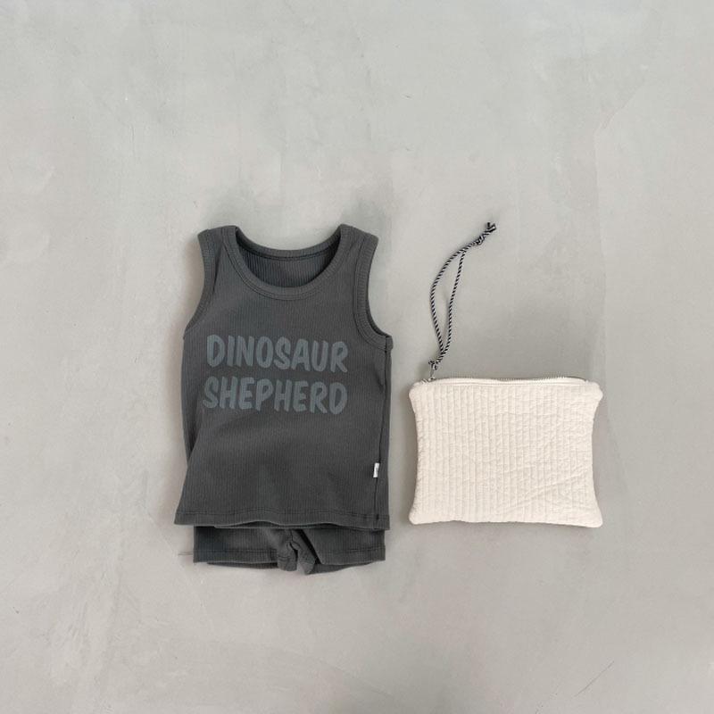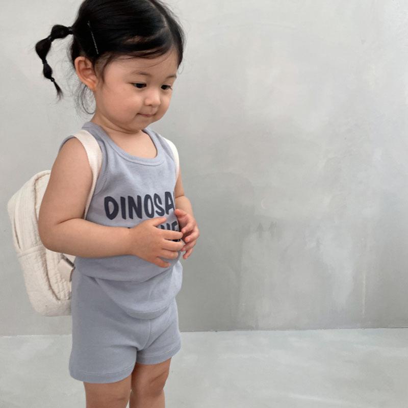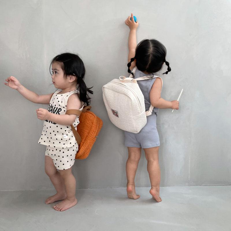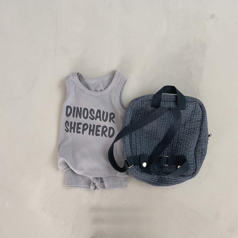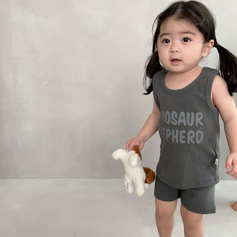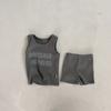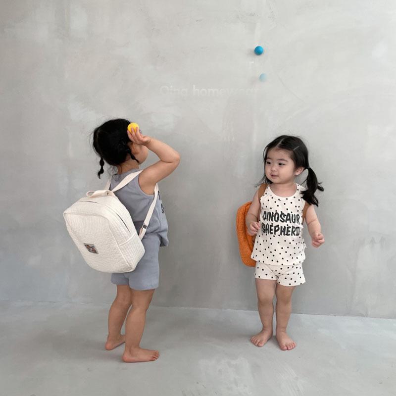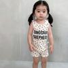 Conjunto de dos piezas de chaleco y pantalones cortos sin mangas de verano para bebés y niños pequeños de estilo coreano con letras y lunares, informal, con tiras en las axilas.