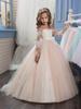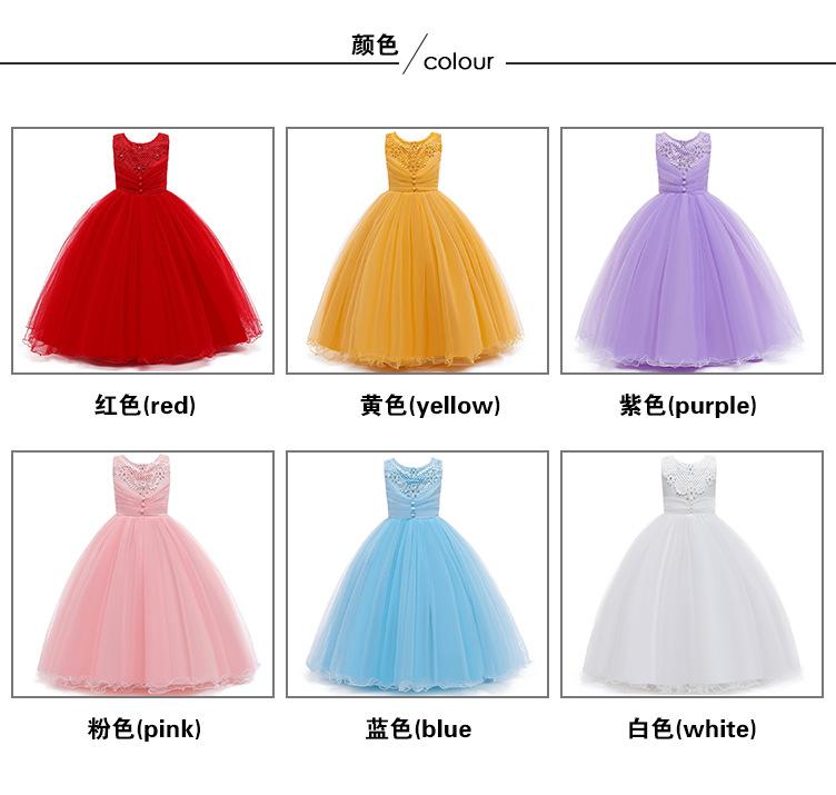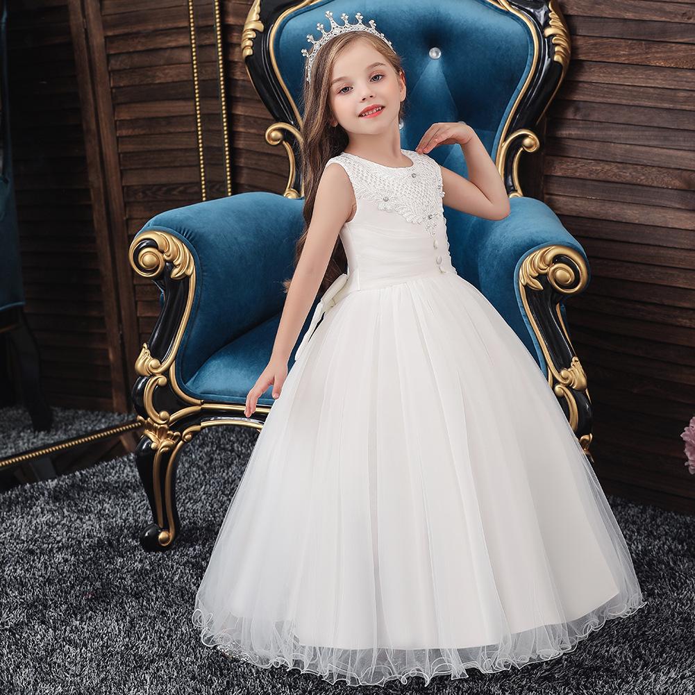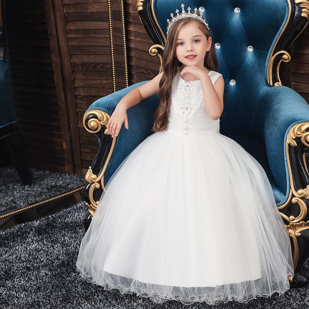 Vestido de novia largo para niñas, falda de princesa de malla esponjosa, ropa infantil europea y americana de talla mediana y grande, ropa de rendimiento estampada para niñasOrdene ahora