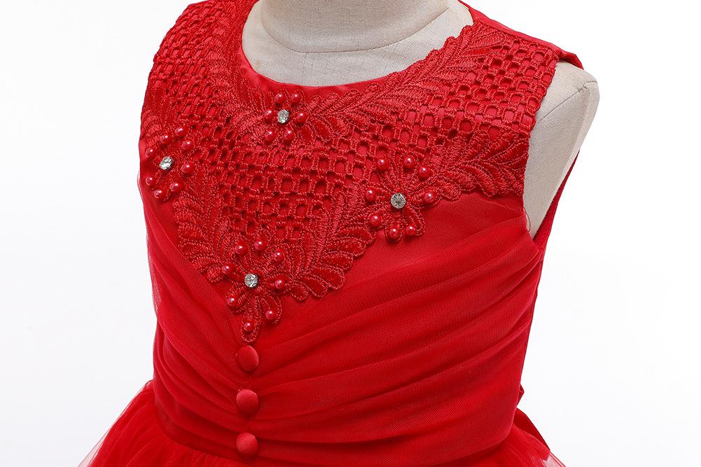 Vestido infantil de comercio exterior, princesa, falda larga, lunares, Navidad, rojo, niña, pasarela, actuación, disfraz bordado, vestido infantil de una piezaOrdene ahora